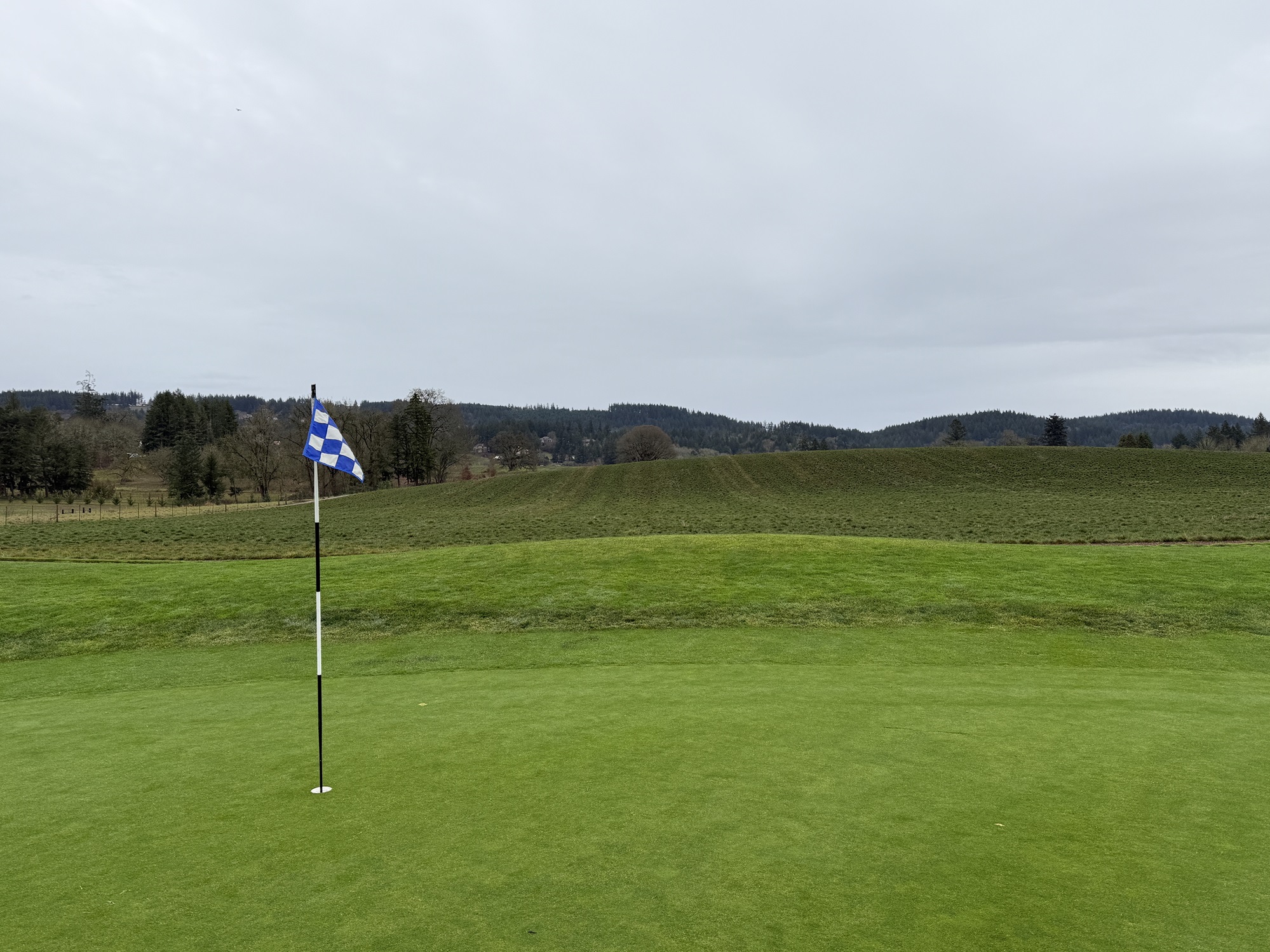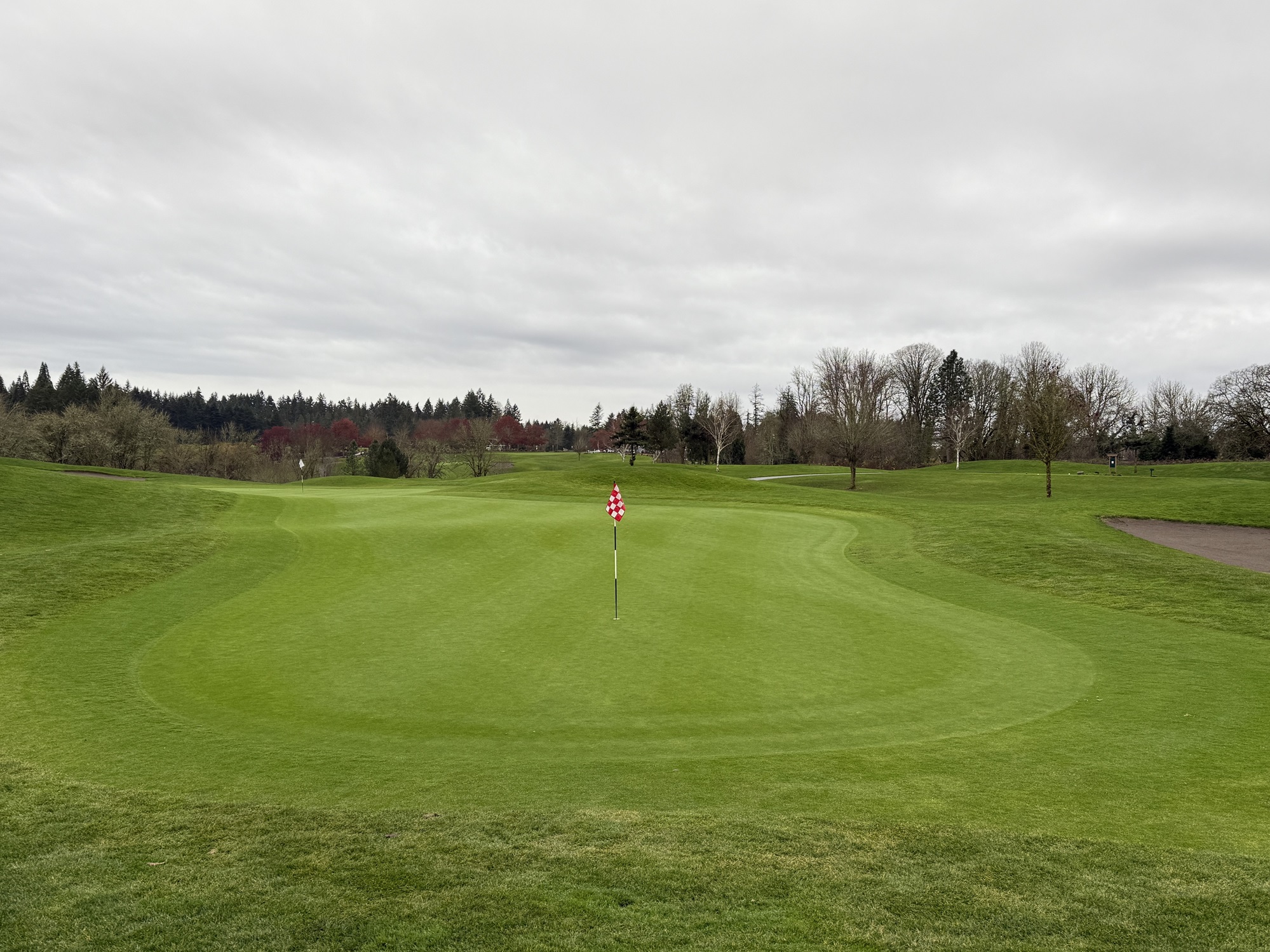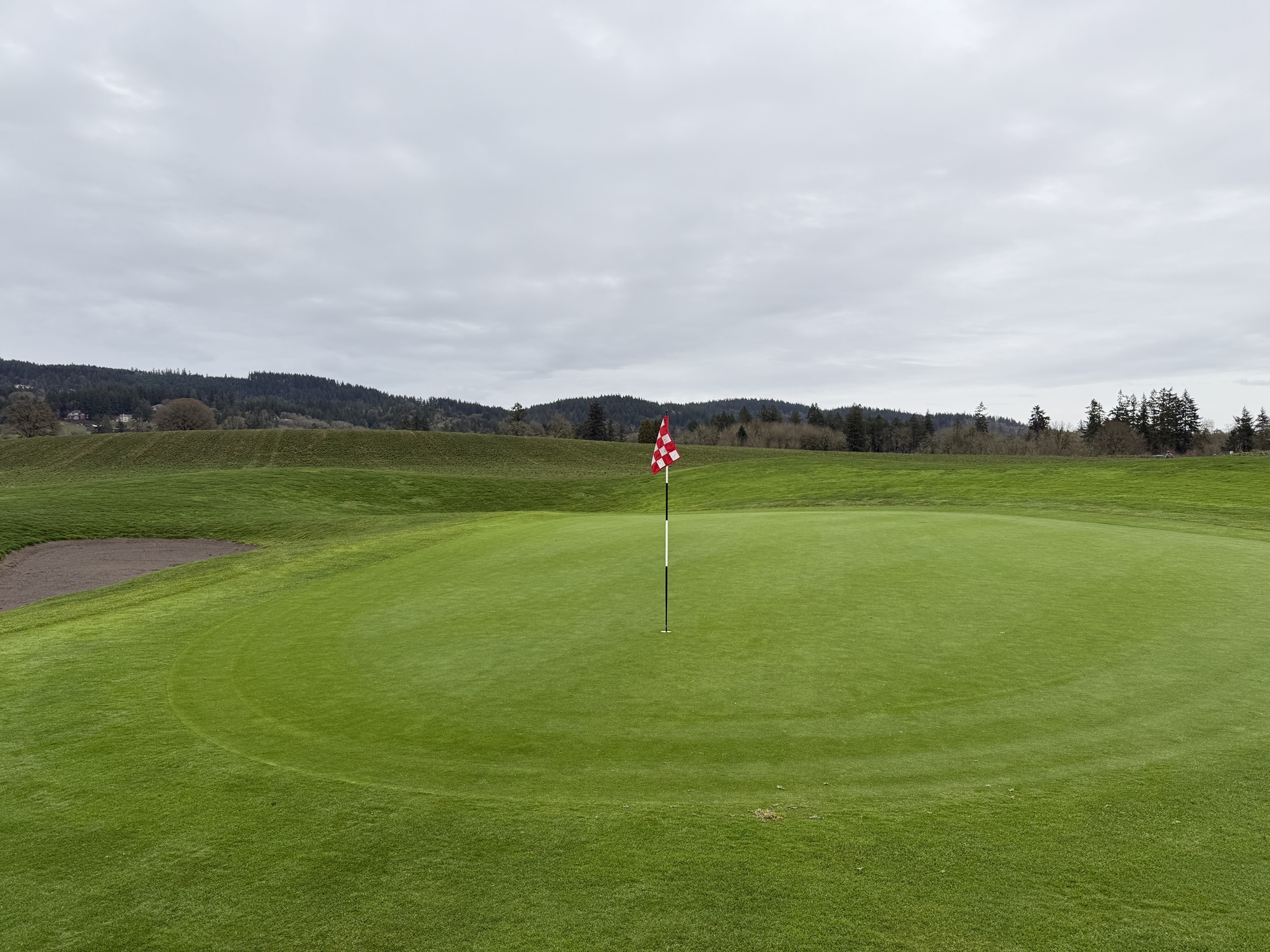 The back nine has some shorter holes, including a short par-3, par-4, and par-5. The 10th has a great view of the Oregon countryside while the closing holes have some options, with water that can impact strategy. The 16th is a short par-3 with a small green that falls off around the edges.