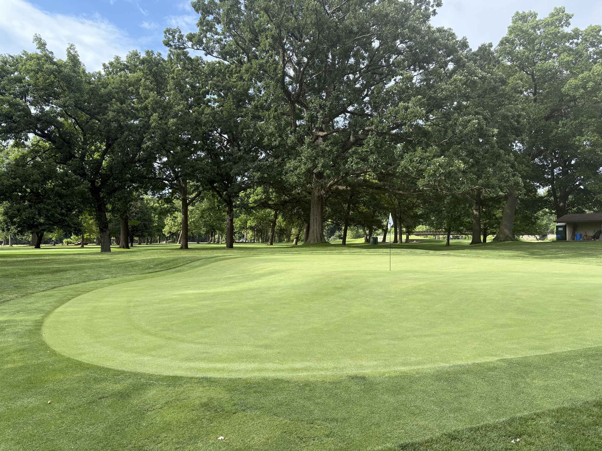 Eberhart-Petro is a municipal course and it was in great shape. The green fee to walk was only $24. The tees and fairways were lush and the ball sat up. The greens were full and rolled well, just on the slower side.