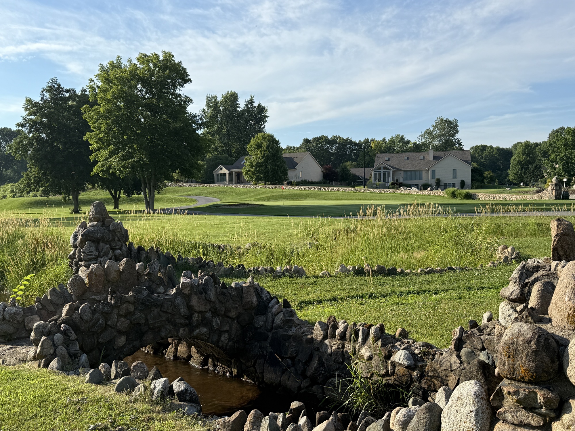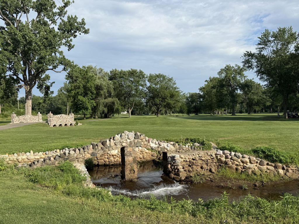 The back nine plays 2,666 yards and has some target golf. The back nine starts with a driveable par-4 – the 265 yard par-4 10th. There are a number of holes on the back that play that near a creek. The 12th, 15th, and 16th are holes near the creek and they show off some nice stonework. A couple rock walls and bridges are the highlight of the back nine.