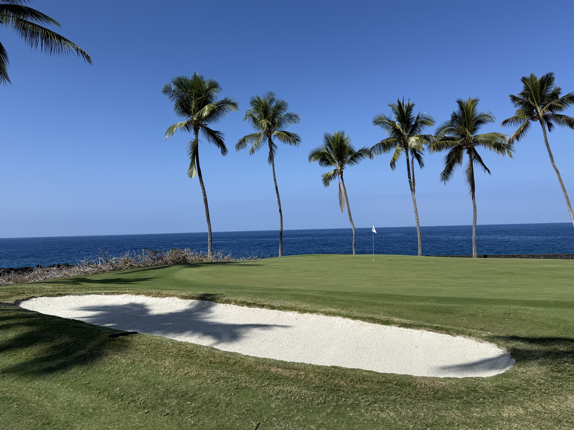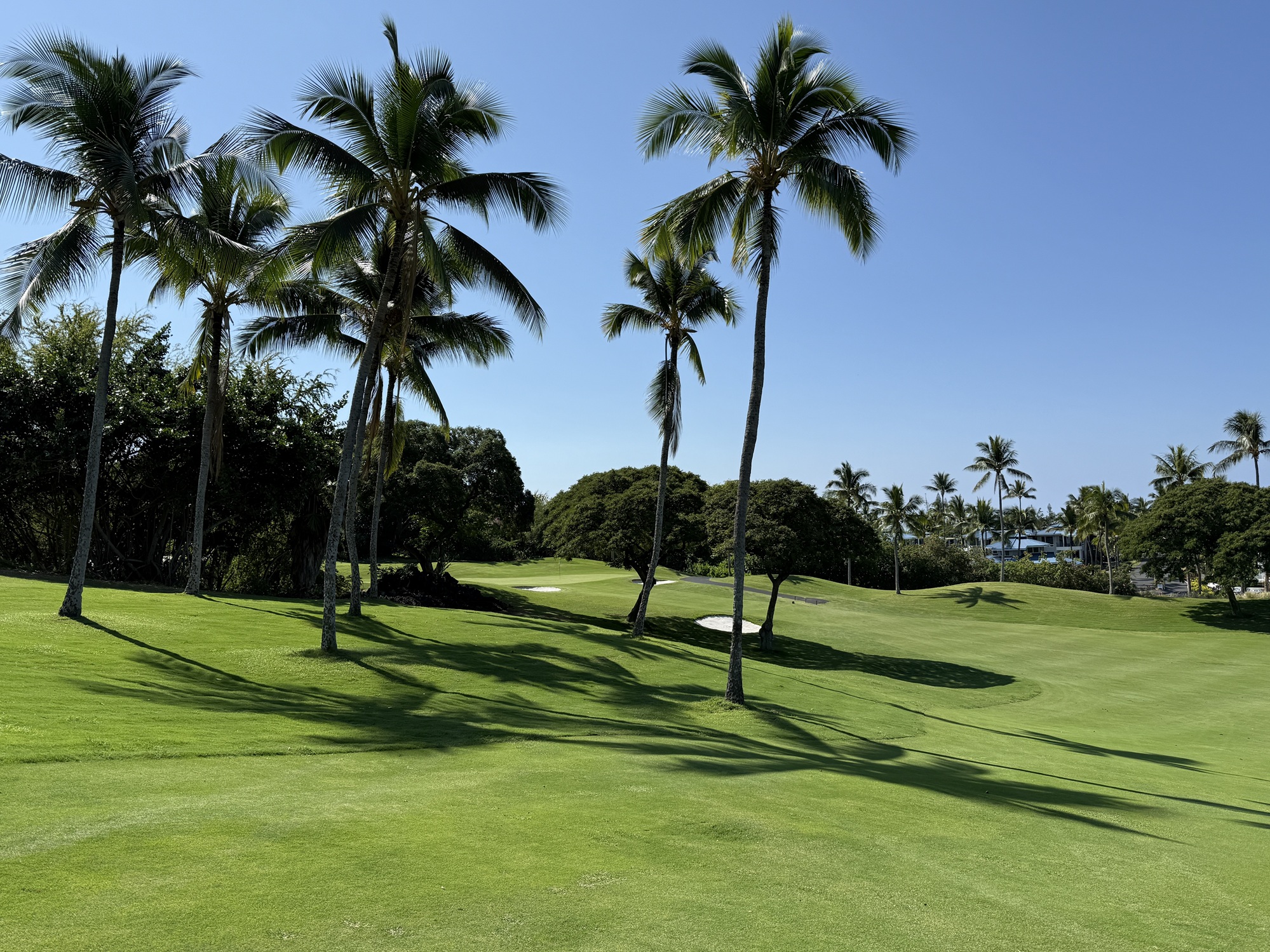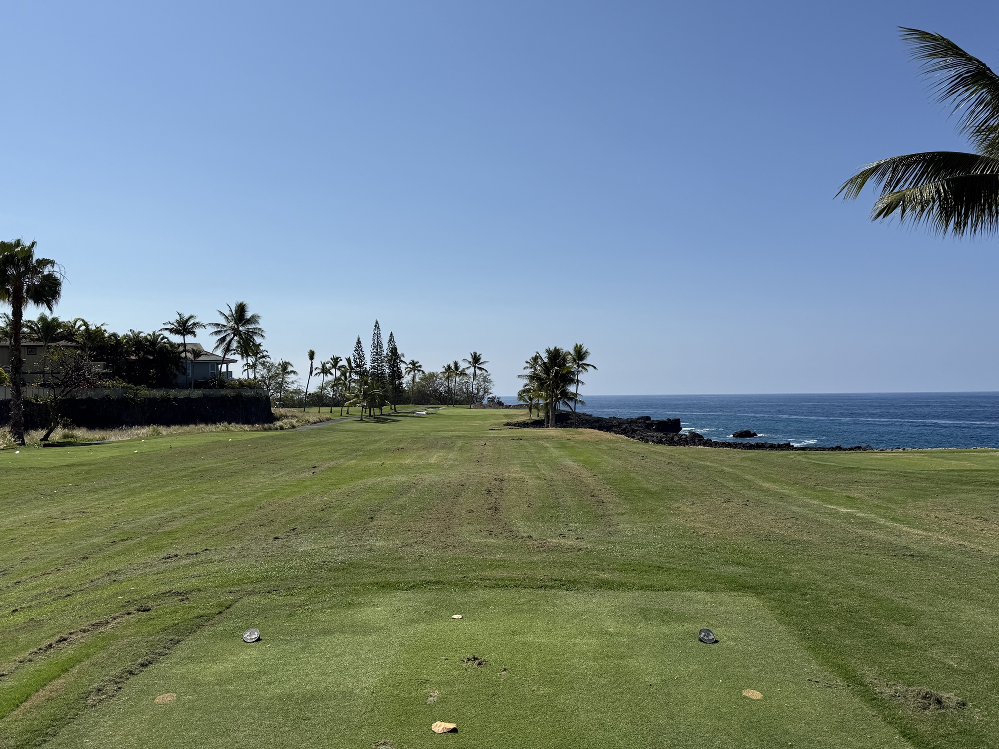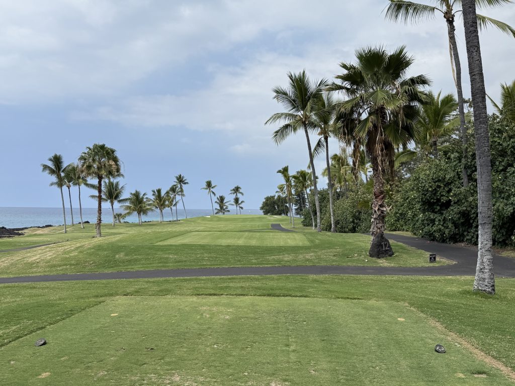 The setting at Kona CC is pretty awesome and the course has multiple signature holes. On the front nine, the 2nd and 3rd holes are special. The 2nd is a reachable par-5 with a green that sits close to the ocean. The green is surrounded by palm trees and waves crash against the rocks nearby. The 3rd is a long par-3 with the ocean lurking to the right.