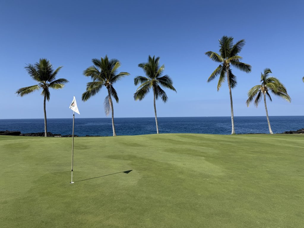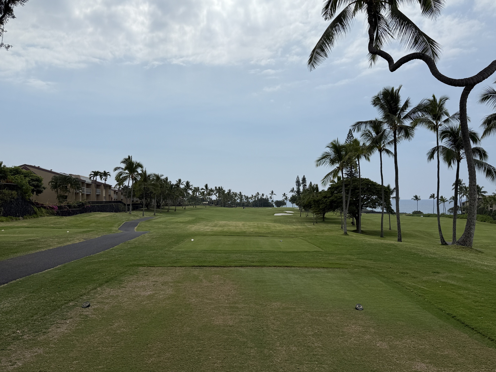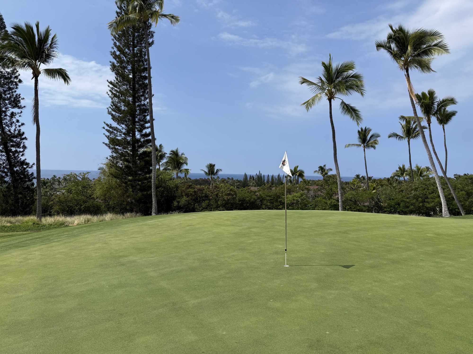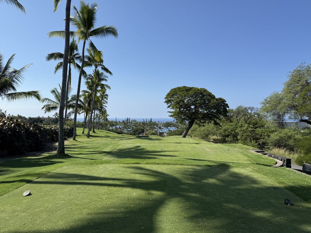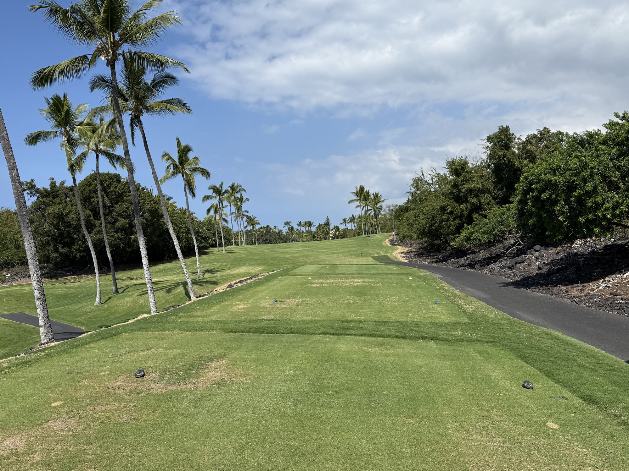 The setting at Kona CC is pretty awesome and the course has multiple signature holes. On the front nine, the 2nd and 3rd holes are special. The 2nd is a reachable par-5 with a green that sits close to the ocean. The green is surrounded by palm trees and waves crash against the rocks nearby. The 3rd is a long par-3 with the ocean lurking to the right.