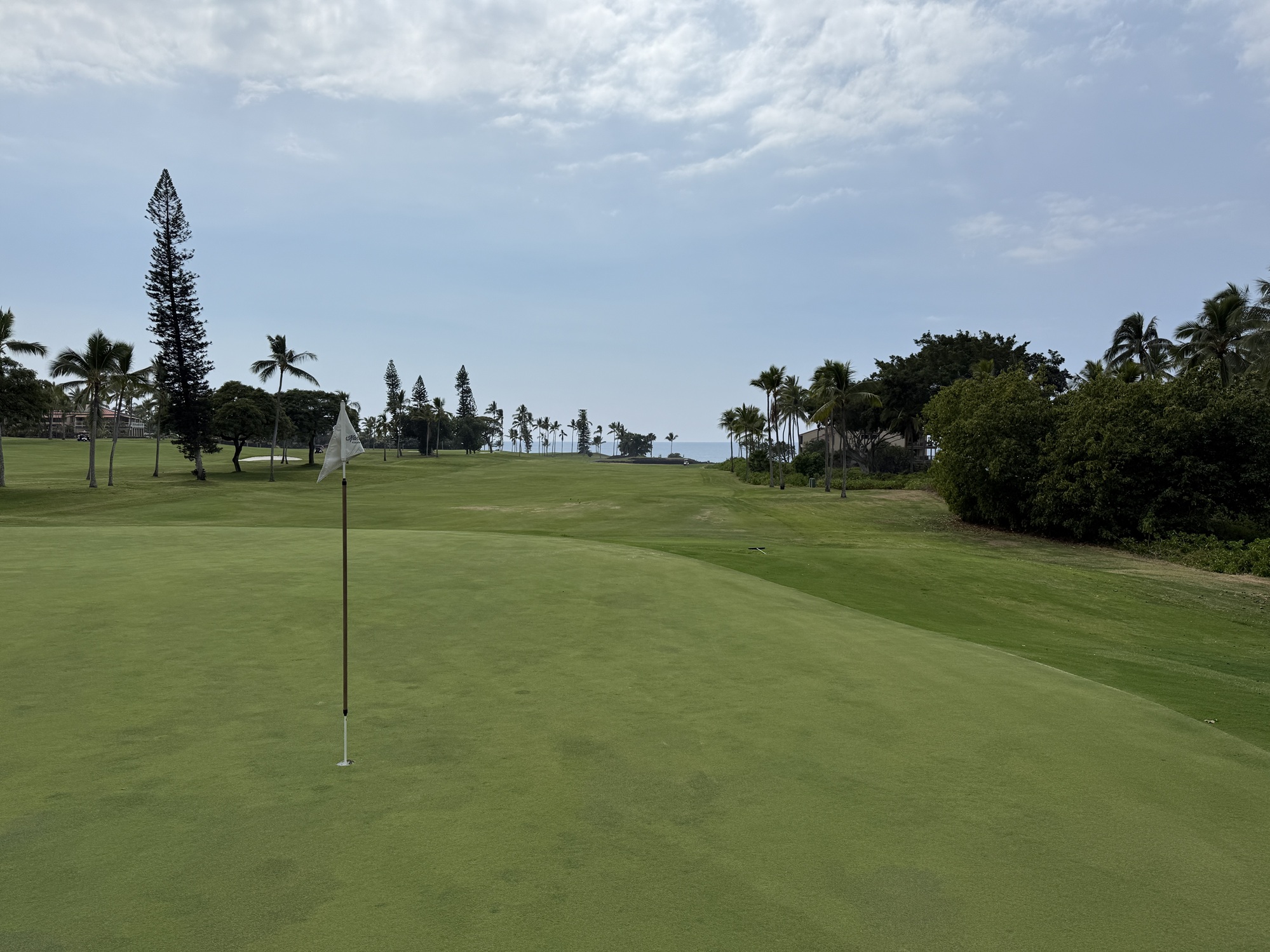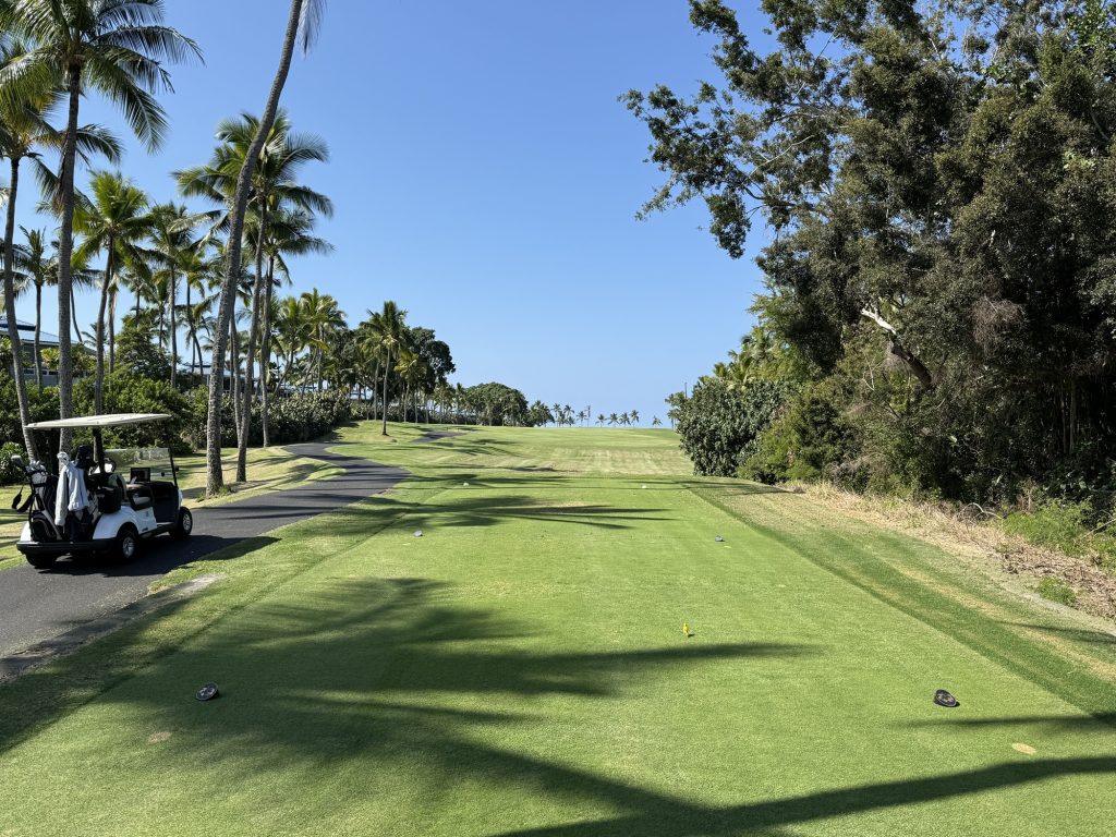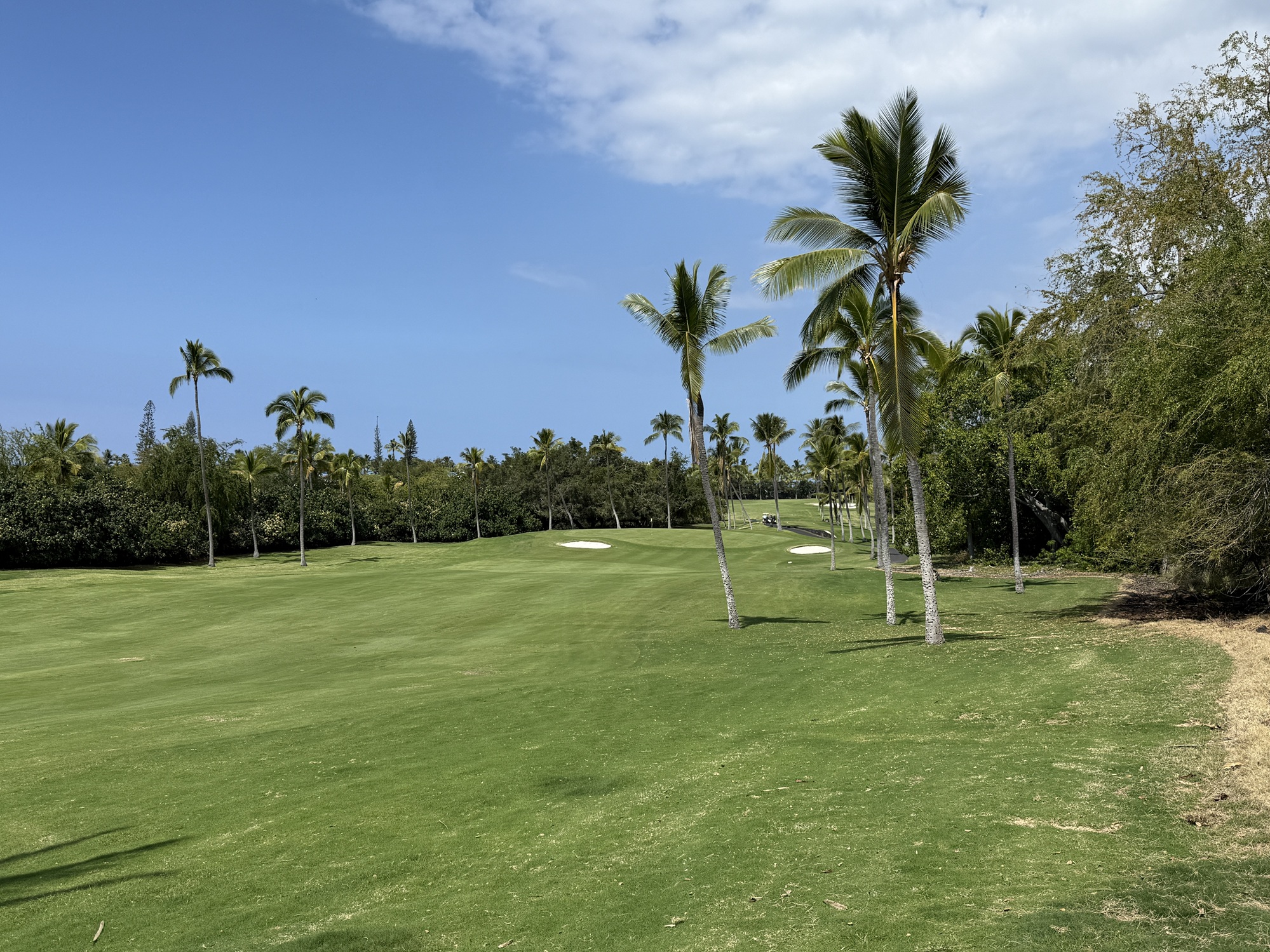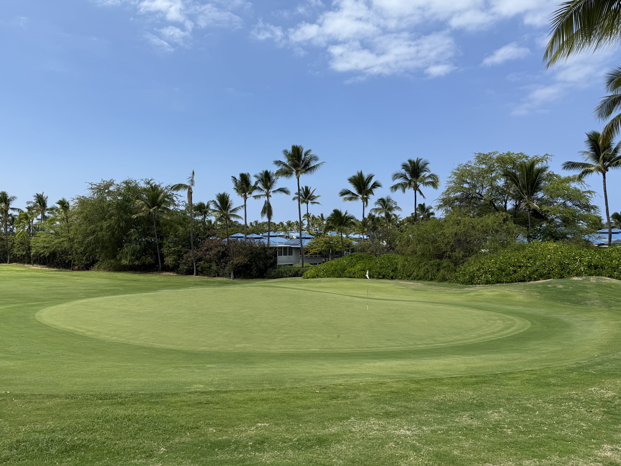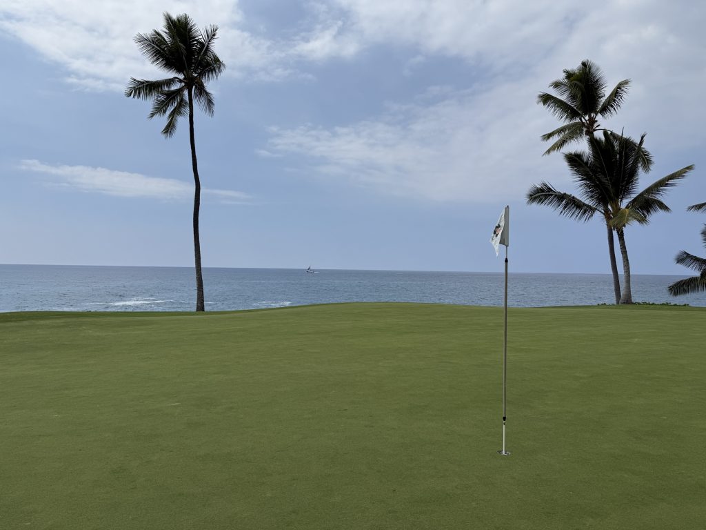 The setting at Kona CC is pretty awesome and the course has multiple signature holes. On the front nine, the 2nd and 3rd holes are special. The 2nd is a reachable par-5 with a green that sits close to the ocean. The green is surrounded by palm trees and waves crash against the rocks nearby. The 3rd is a long par-3 with the ocean lurking to the right.