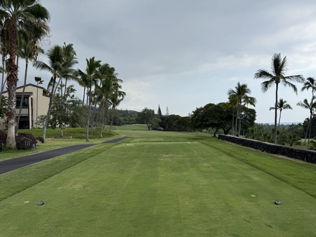 I found Kona CC to be an interesting place. The course sits on hilly land that overlooks Keauhou Bay. There are some very good views of the area and the course has a traditional “Hawaiian” look with many palm trees throughout the course. The front nine is on the south side of the proshop while the back nine is on the north side. Both sides have a few holes with some big elevation changes and other holes with more minor elevation changes. The terrain is one of the course’s most unique attributes.