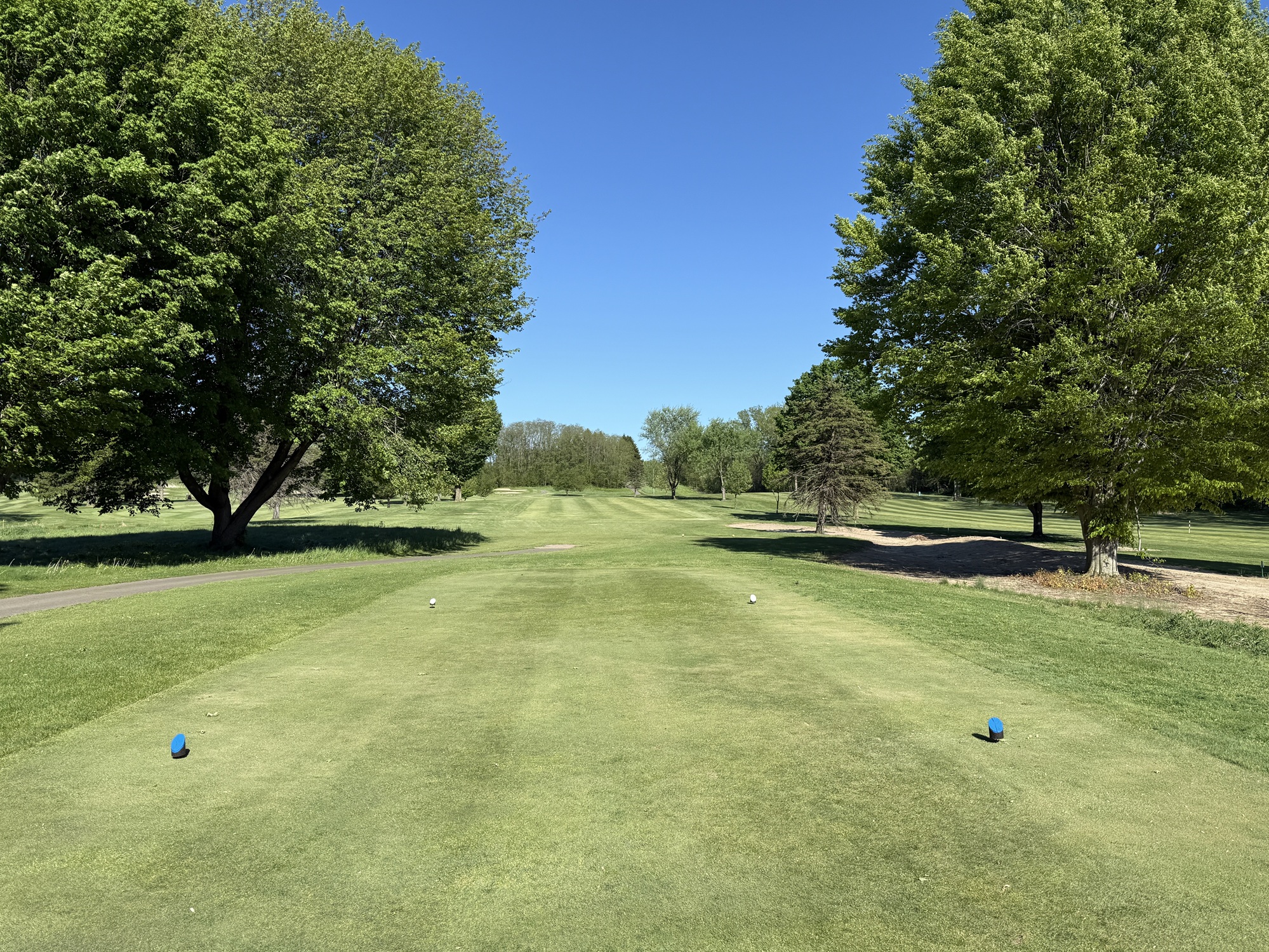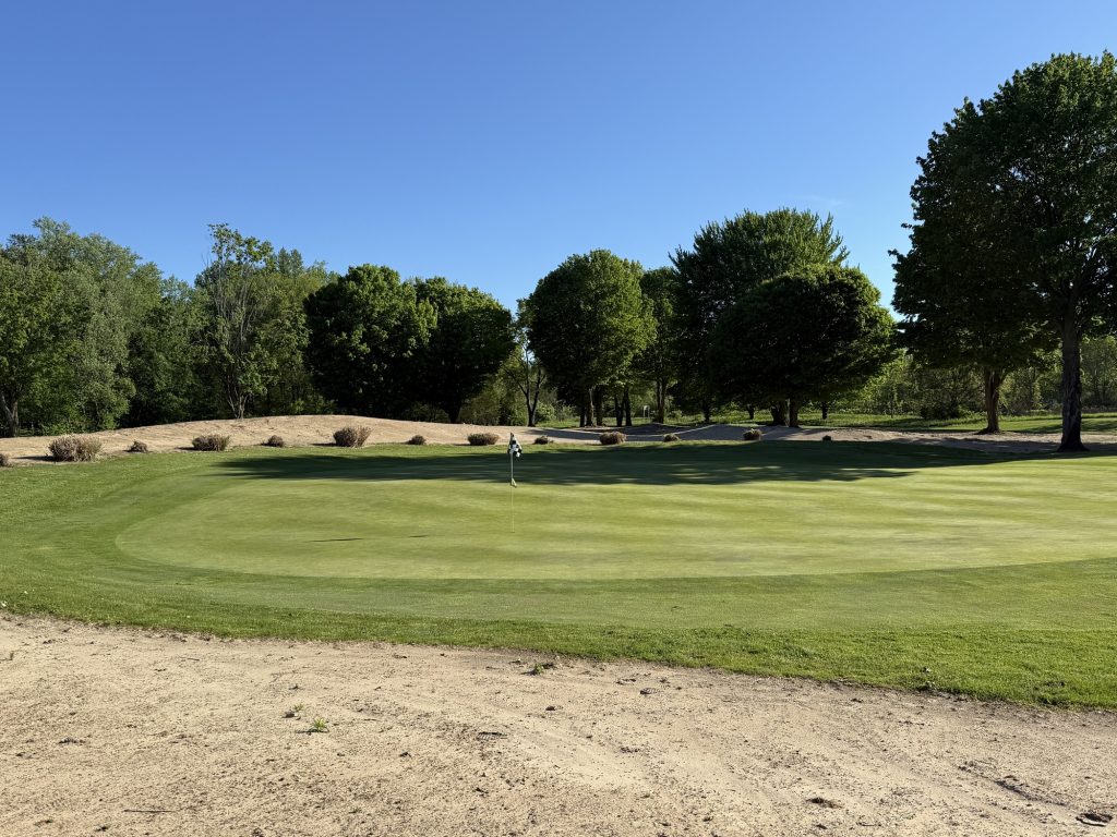 I played the blue tees which are 71.2/130/6396. The course doesn’t look like much on the scorecard, but I found it to be a tough course with my questionable tee game. Tee shots and approach shots need to get through narrow gaps. I wouldn’t mind seeing some trees removed for the sake of playability. The greens have tricky slopes and the bunkers, while not very deep, are quite large. Accuracy is important around Lake Michigan Hills.
