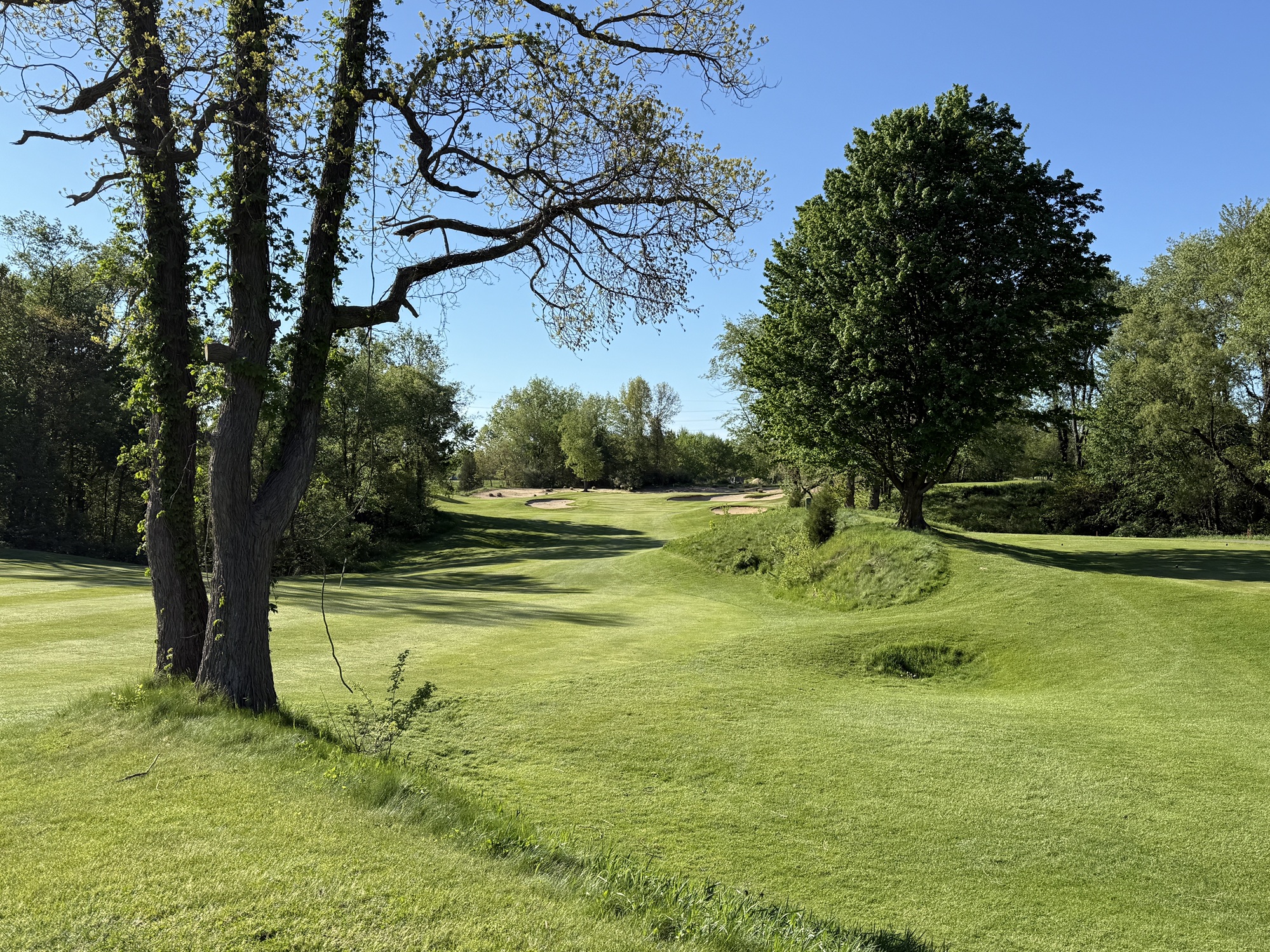 Besides the elevation change, I enjoyed the presentation of Lake Michigan Hills. Many mature trees line the tees and fairways. On a sunny afternoon the shadows looked pretty awesome. The bunkers and the tall grass helped with the look here as well.