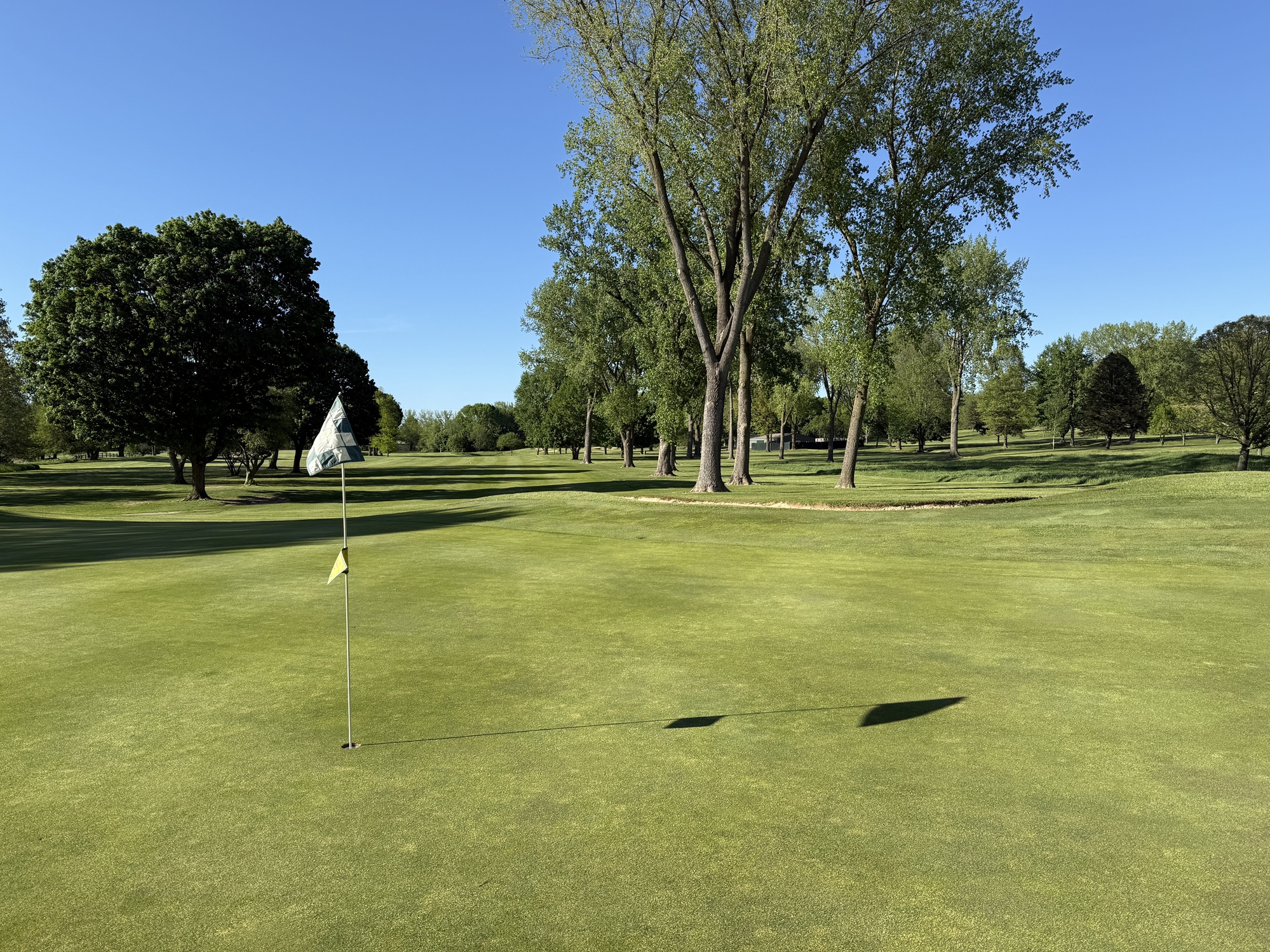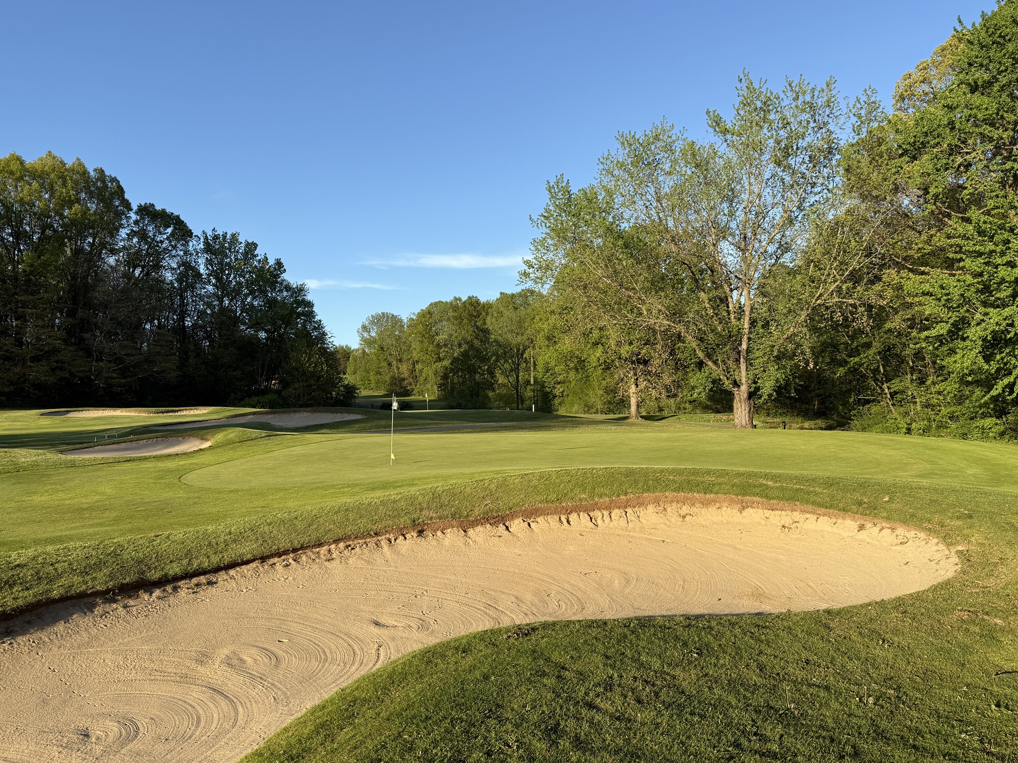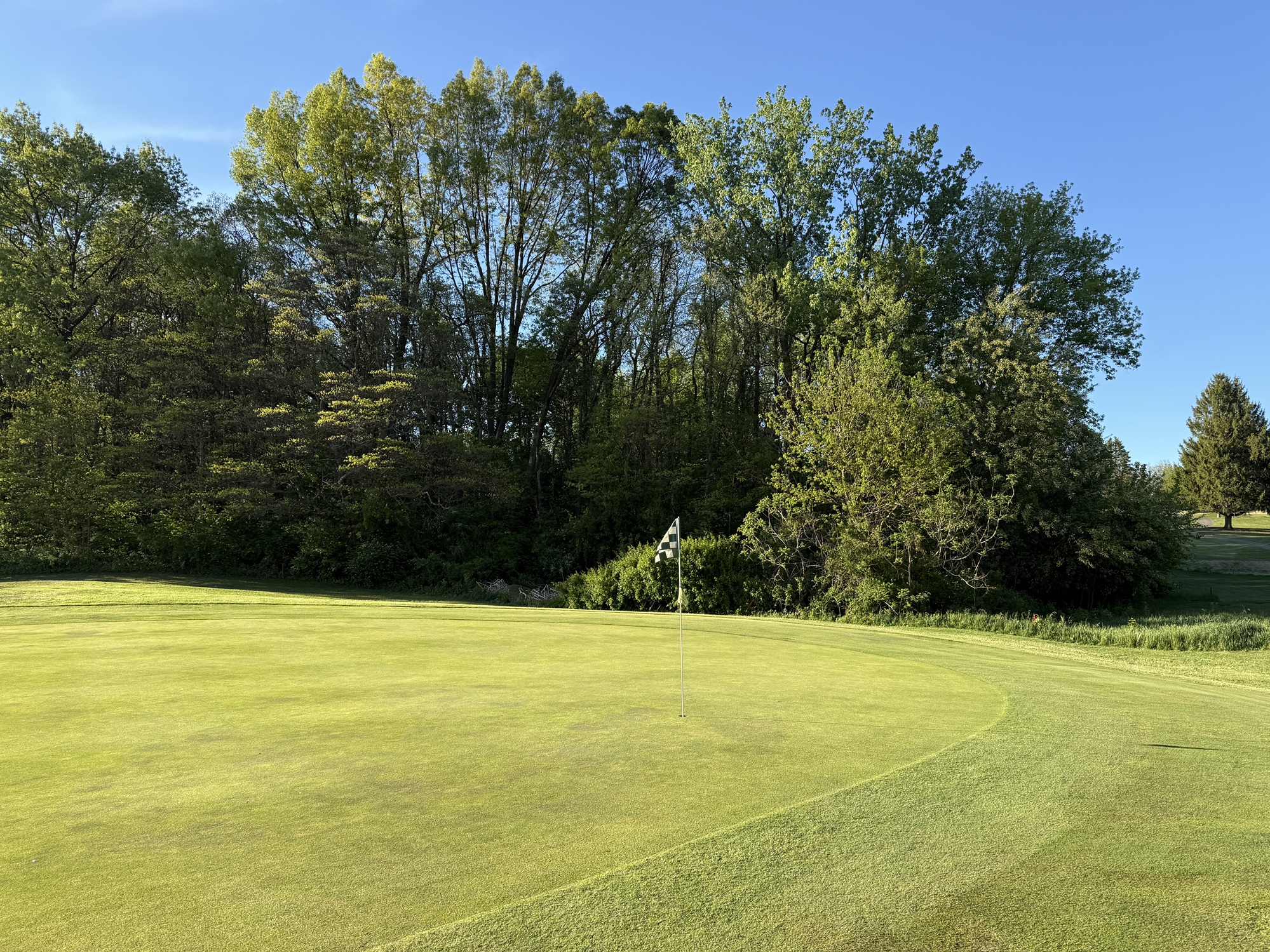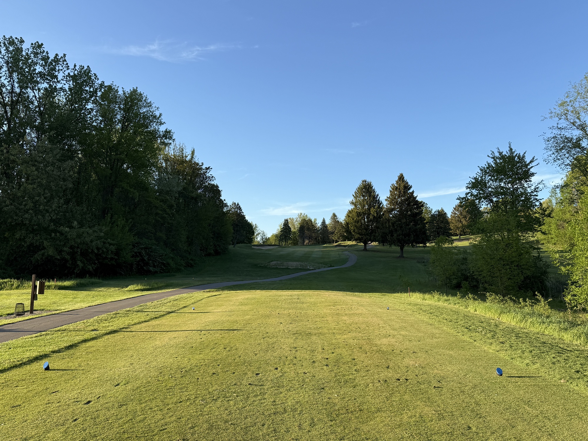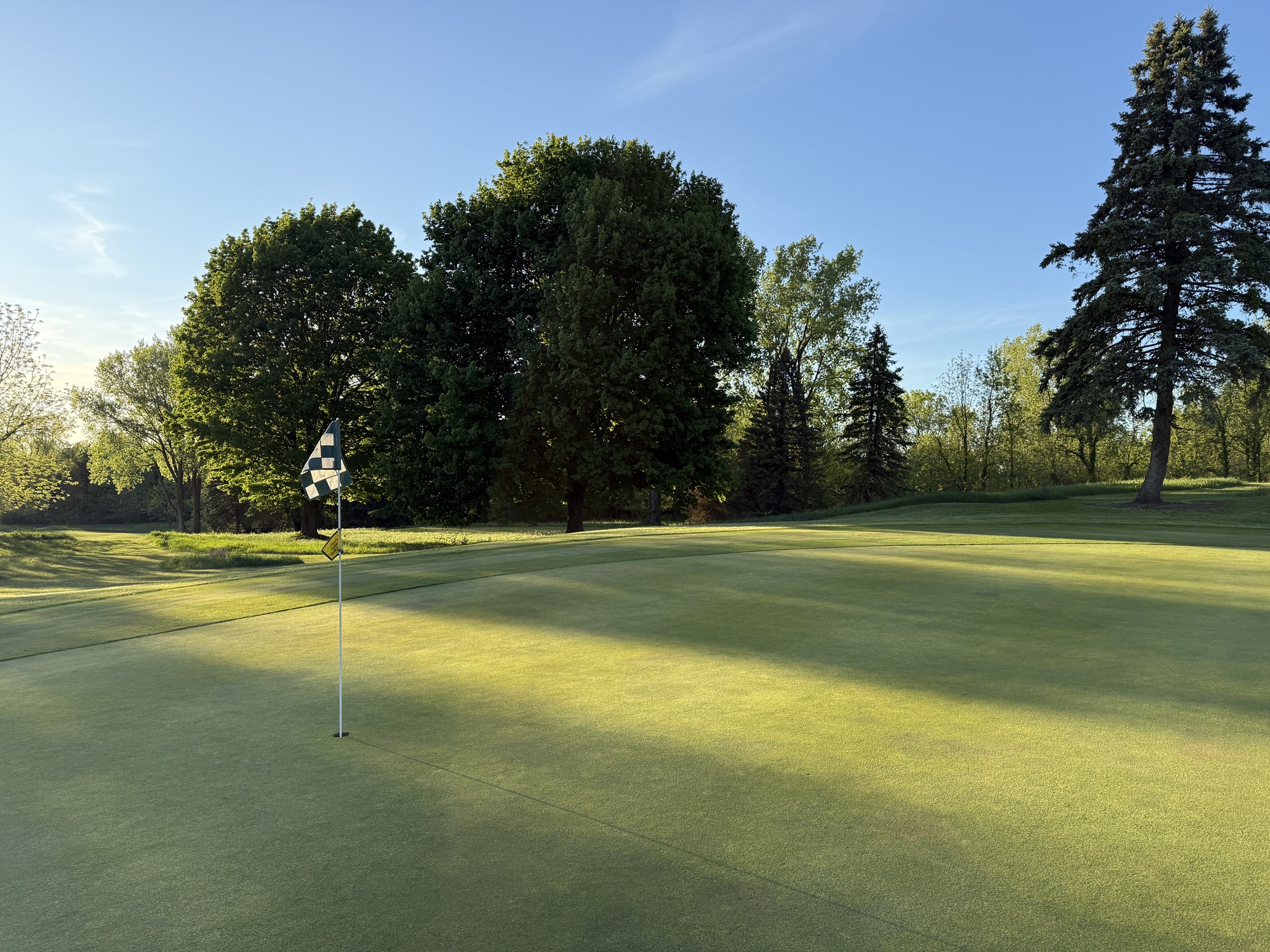I stopped by about 5pm and the proshop got me out right away. I cruised around in less than three hours on what turned out to be a beautiful evening. It was still a bit chilly, but the wind died down and the course sparkled in the sunlight the entire round.