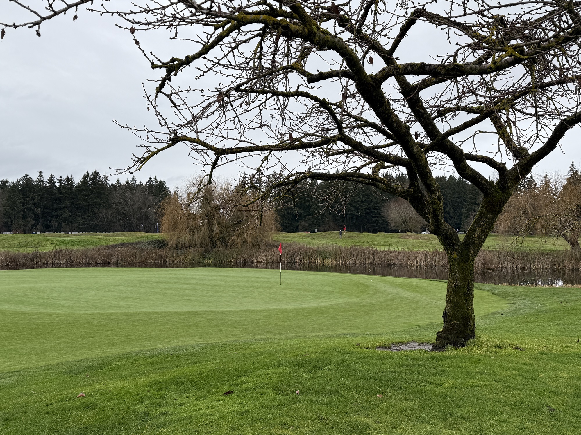 Before I get too far into the review, you should know that December isn’t prime golf season in the Pacific Northwest. The courses are typically soggy while the weather is cool and dreary. Plus, the courses don’t present as well visually in the winter as they do in the summer. Anyway, today we got some peaks of sunshine early before the clouds rolled in. Overall though, it was a nice day for golf.