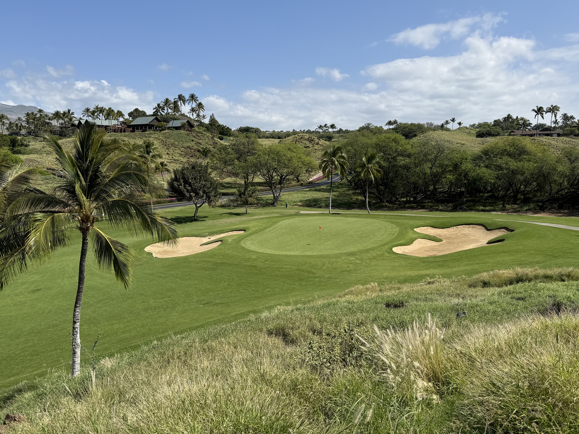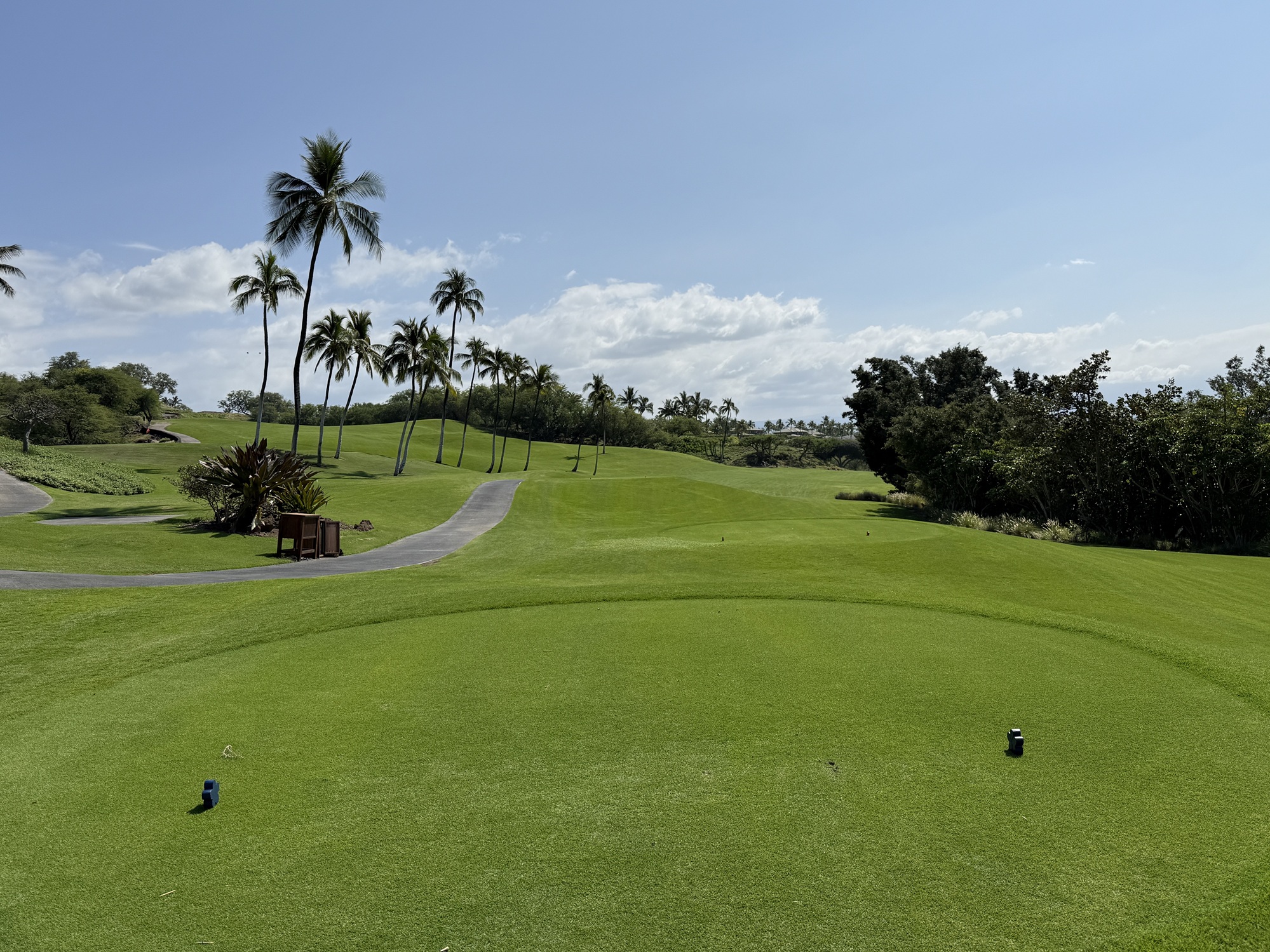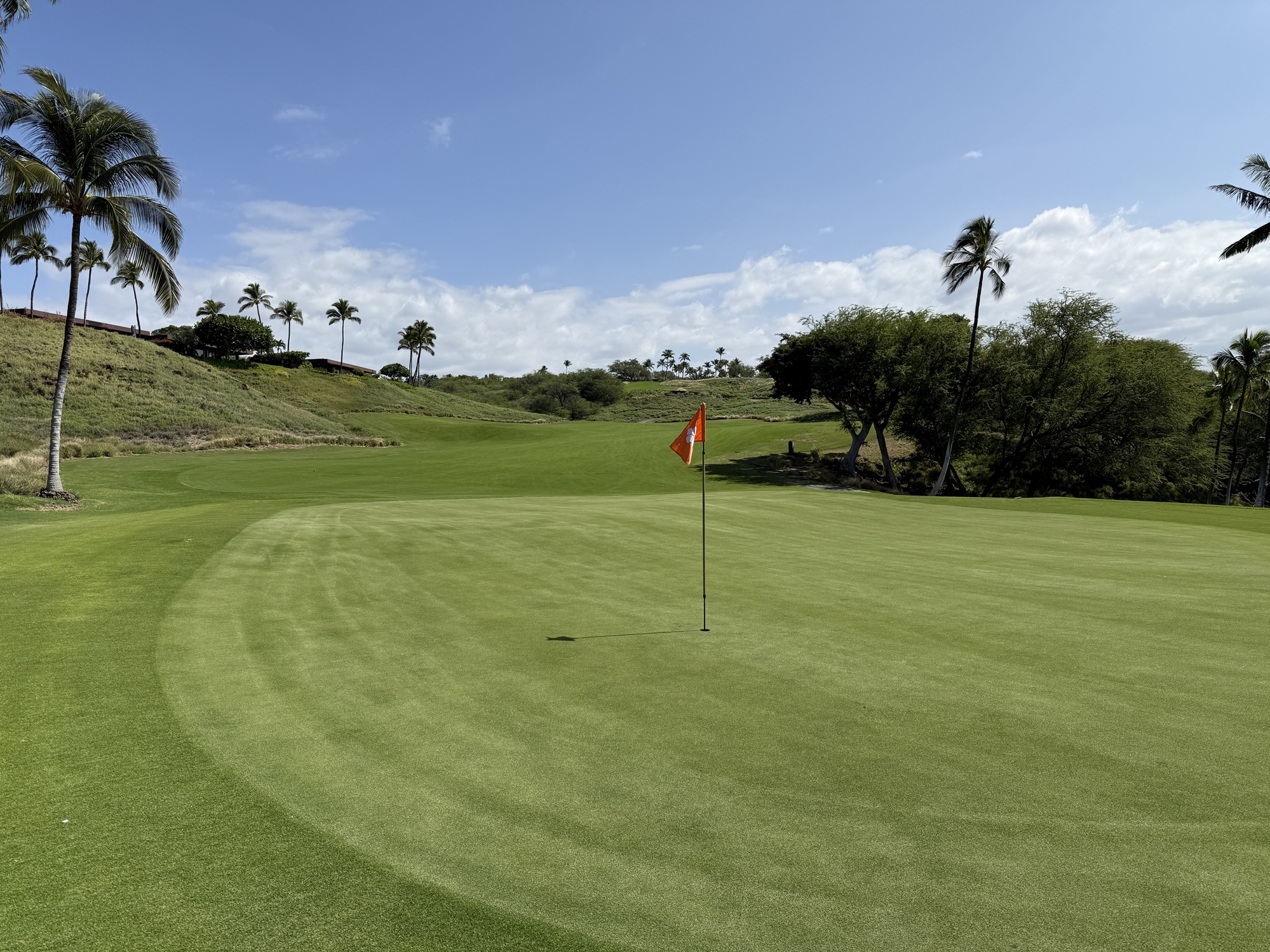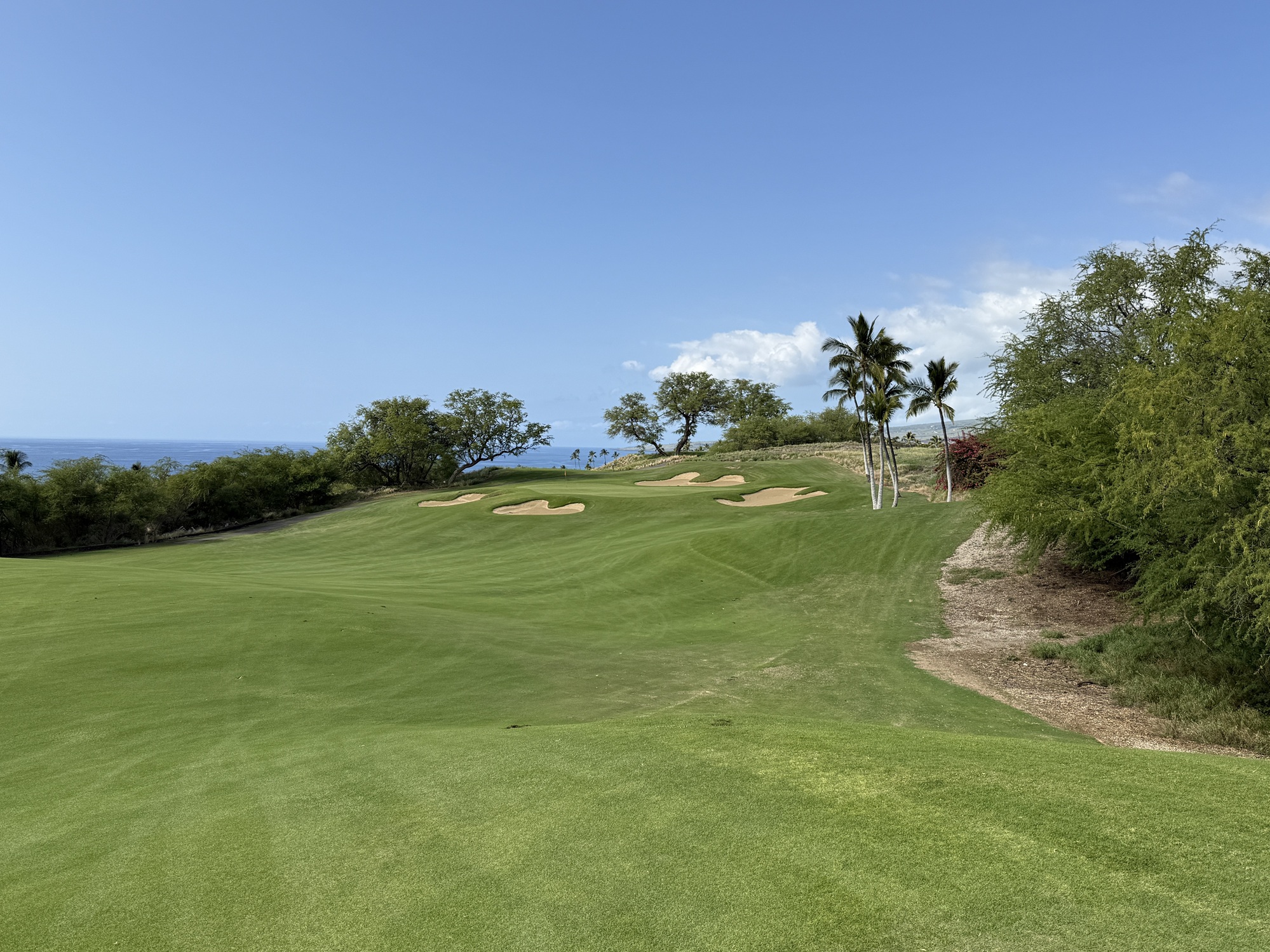 There is quite a bit of land movement throughout the course. We played the tournament tees which are 73.6/140/6806. My suggestion would be to try to miss on the high side if possible. Off the tee, I found Mauna Kea to be fairly playable. The greens are tricky with a number of false edges.
