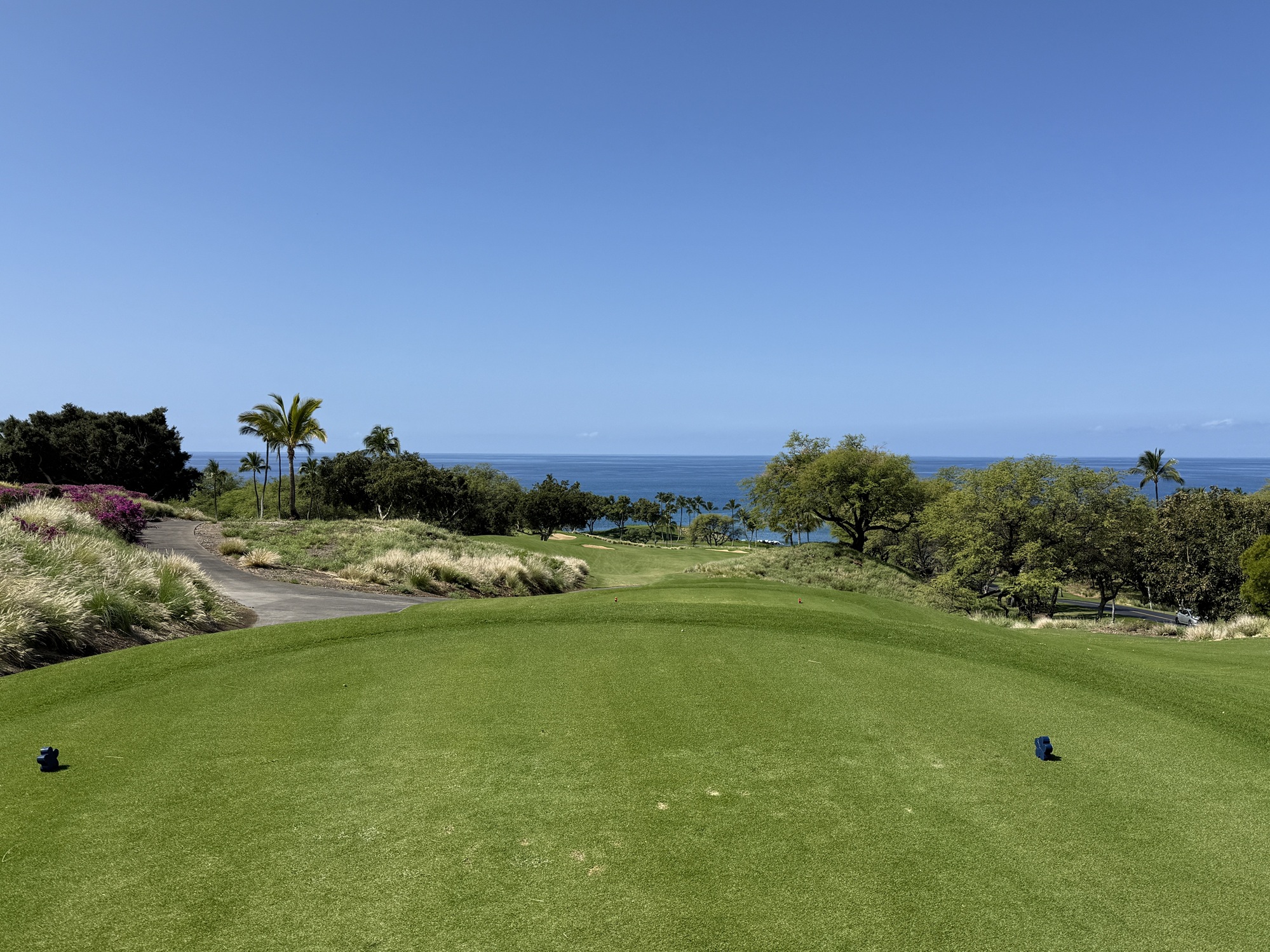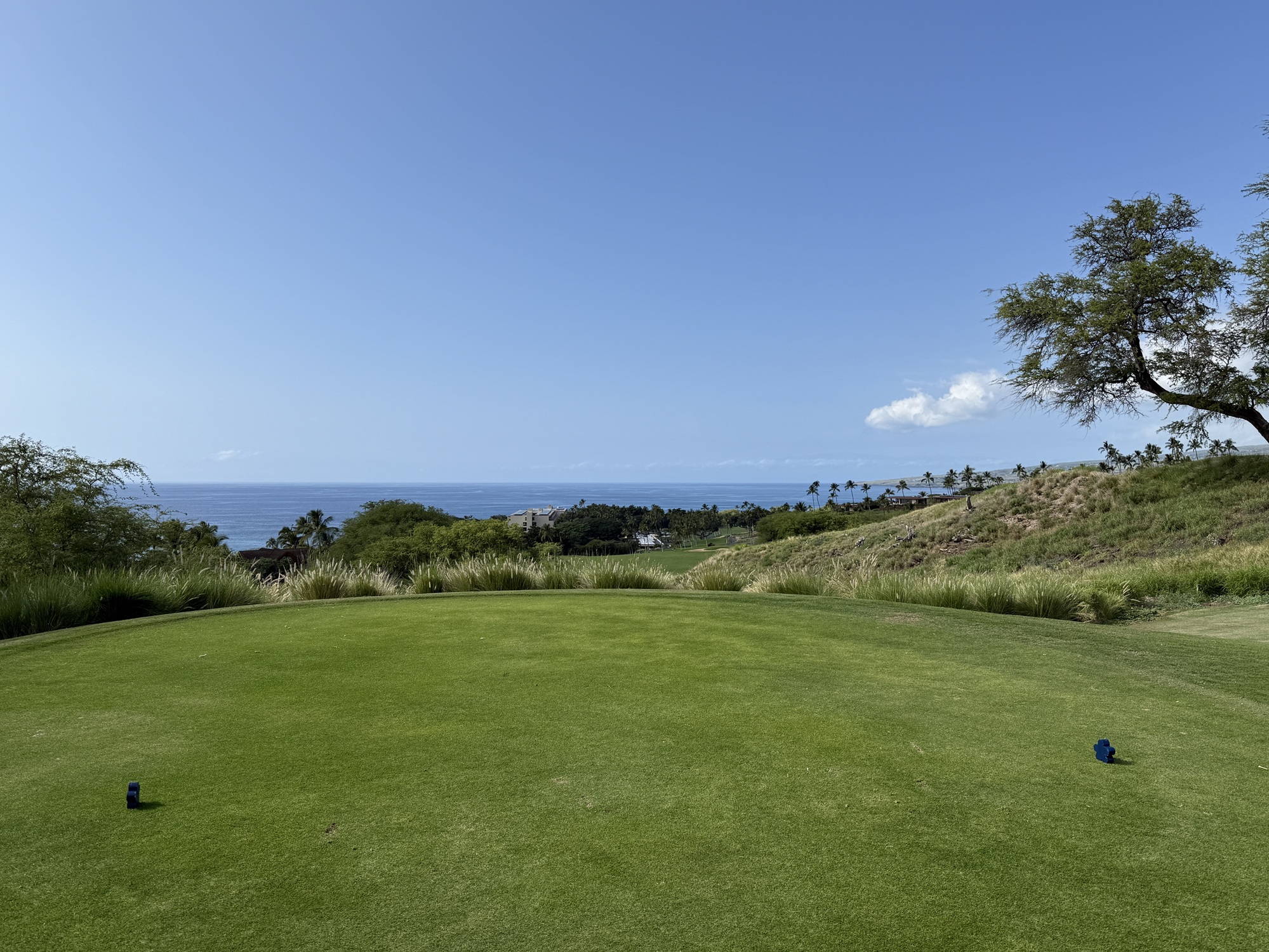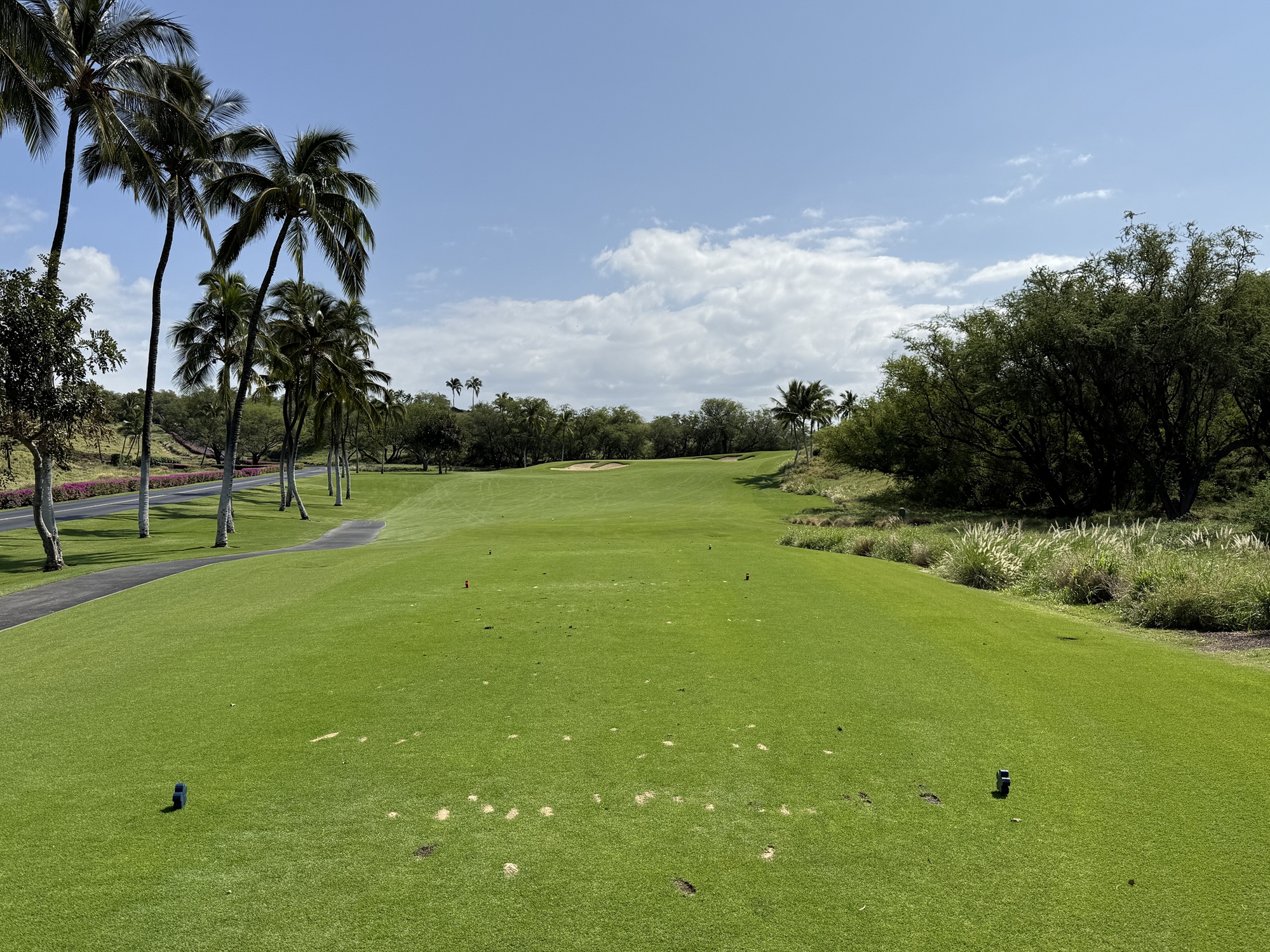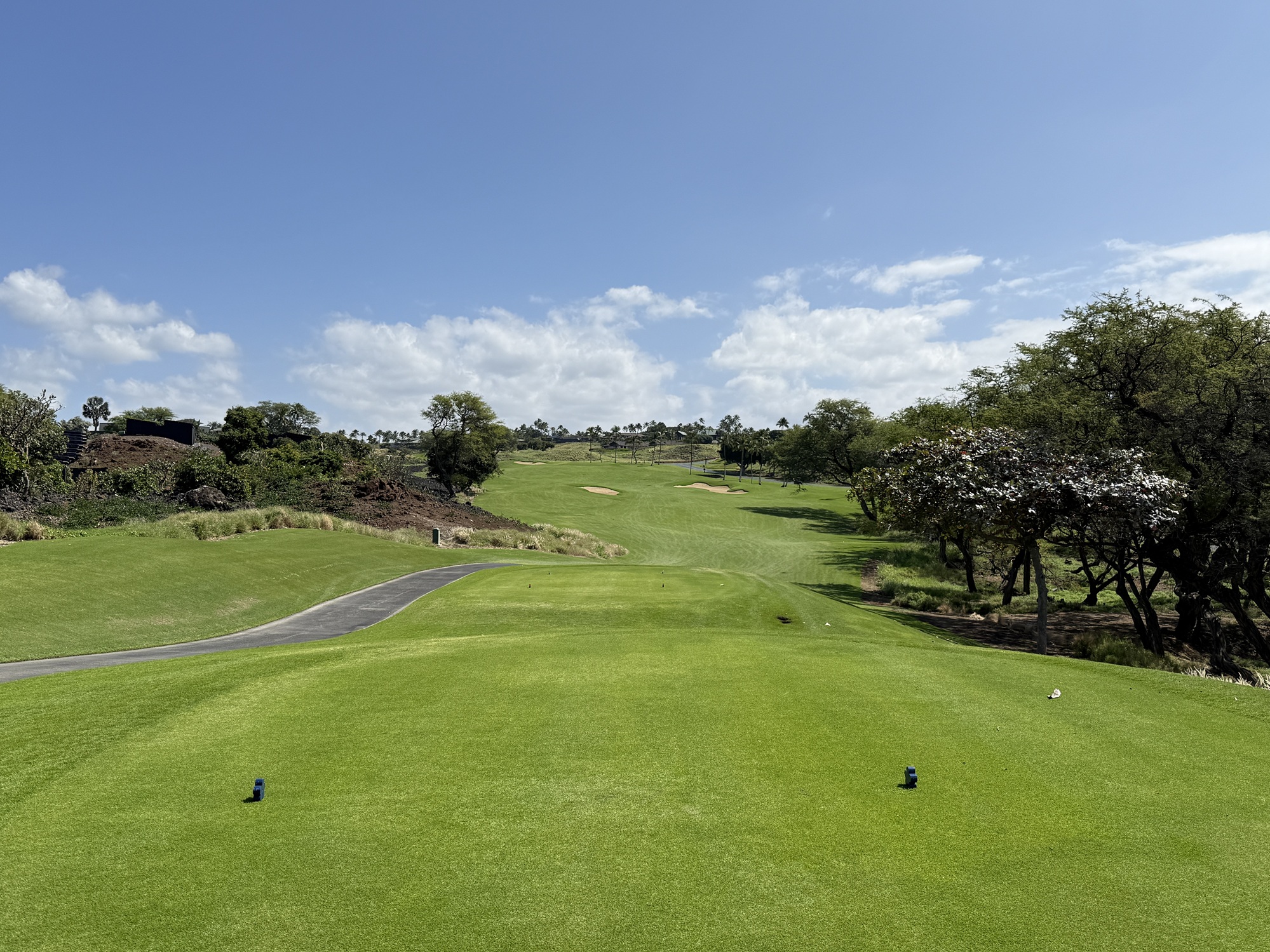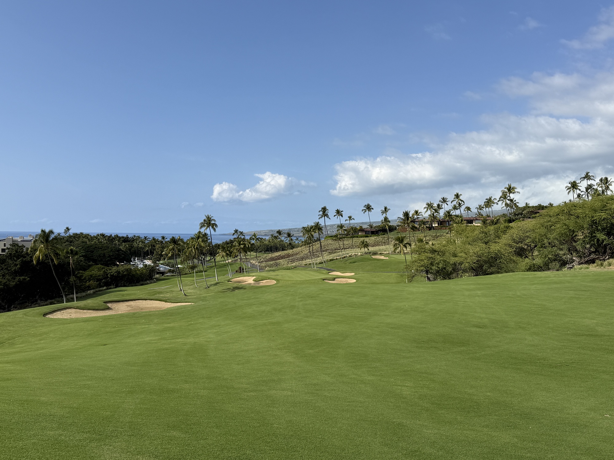 There is quite a bit of land movement throughout the course. We played the tournament tees which are 73.6/140/6806. My suggestion would be to try to miss on the high side if possible. Off the tee, I found Mauna Kea to be fairly playable. The greens are tricky with a number of false edges.