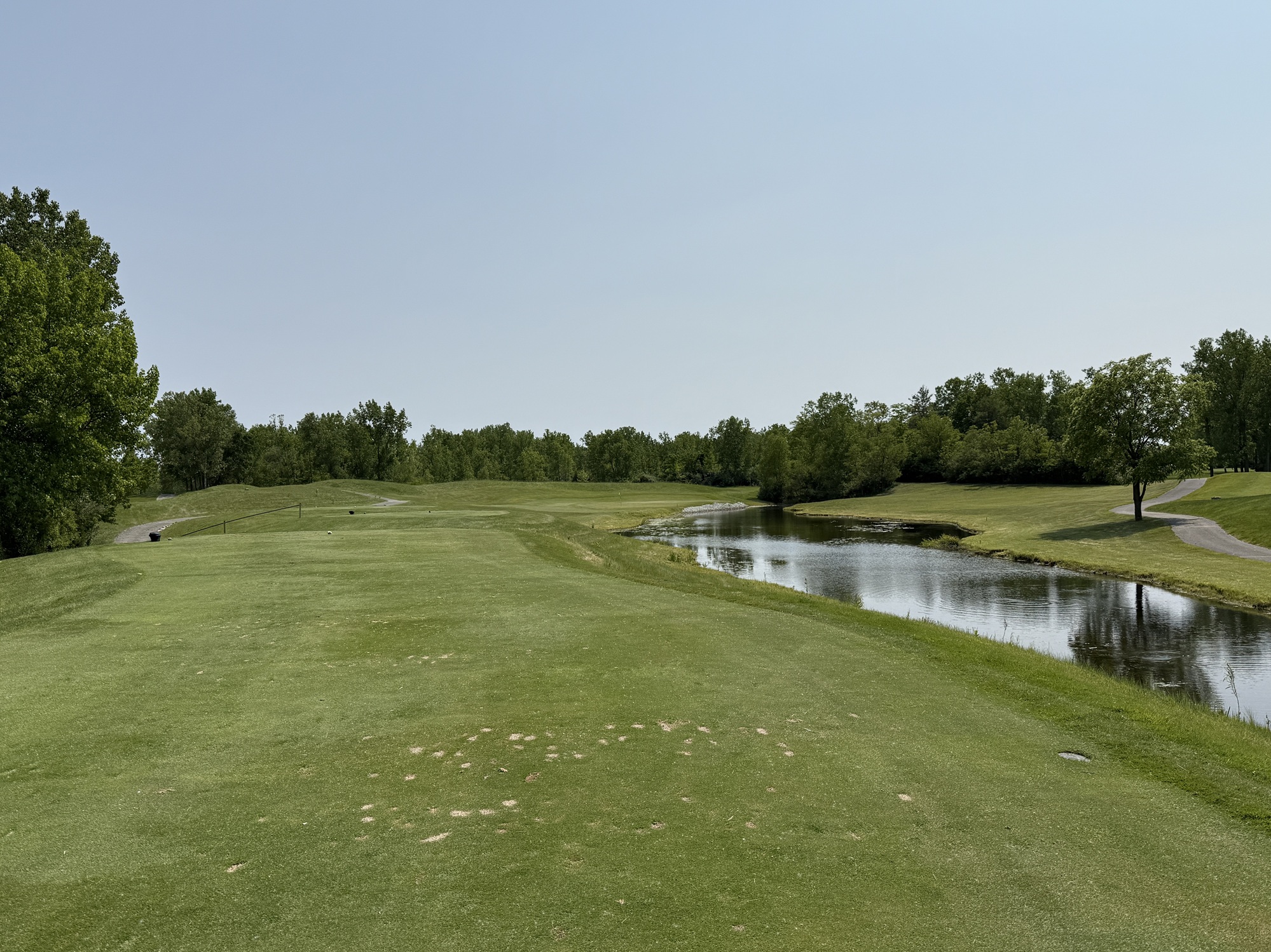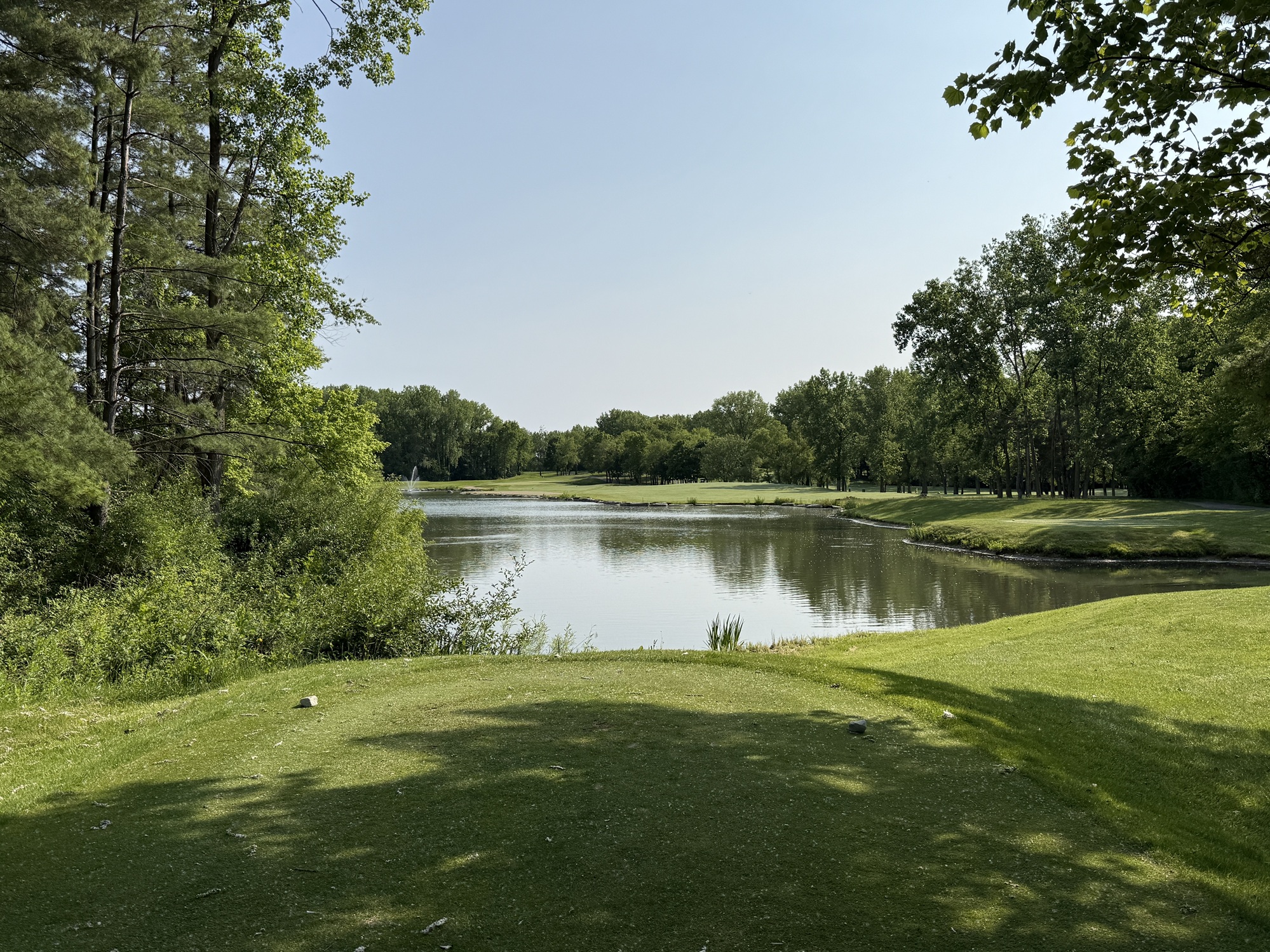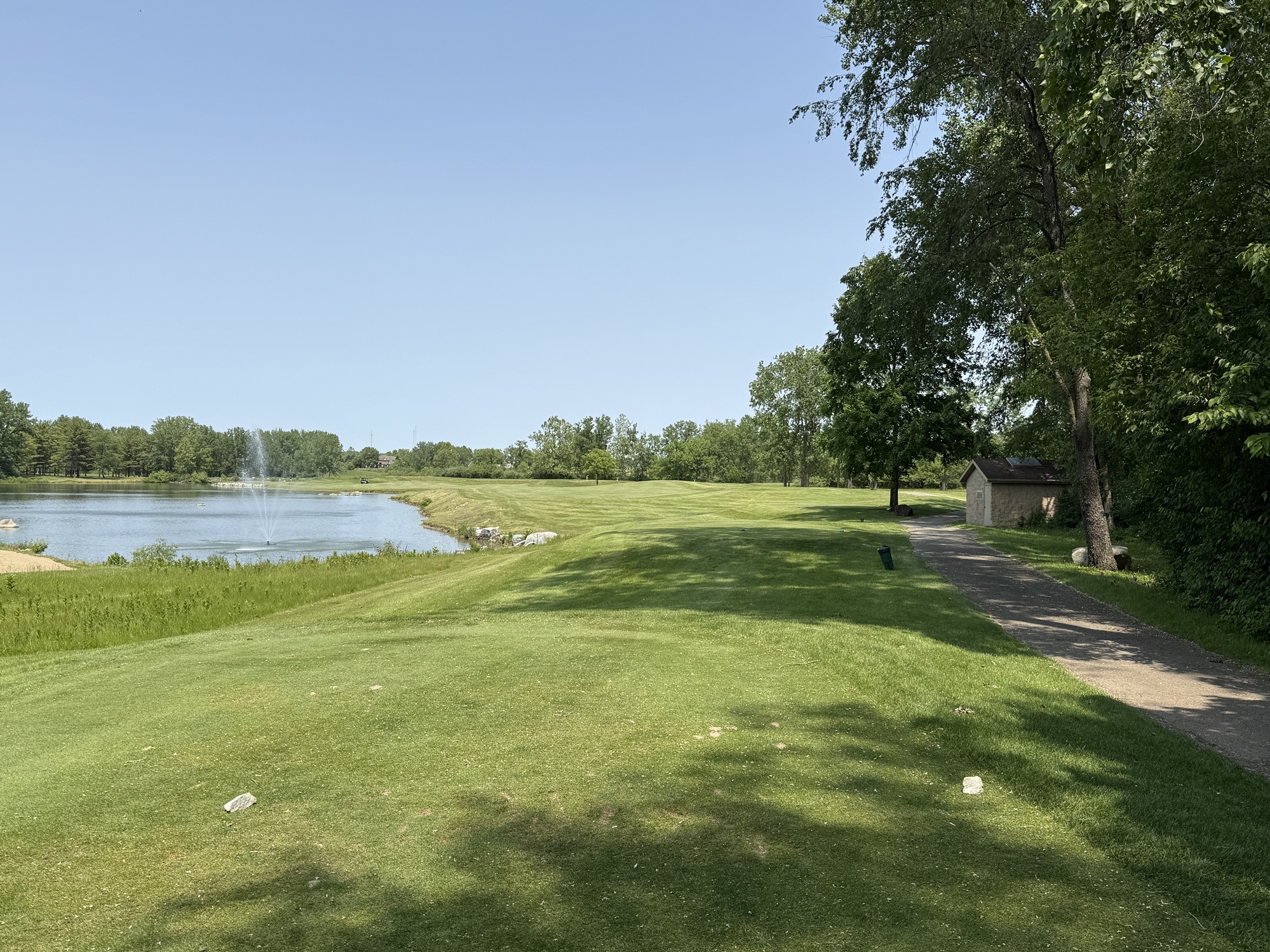 I’m not sure there is a signature hole at Rock Hollow, but the par-3’s are pretty interesting. The 4th is 152 yards and plays to a table top green. The green is large, but if a shot catches the edge the ball will run down into a chipping area that circles the green. The 11th is 163 yards and has a green that angles from front right to back left. The 14th – 201 yards – is a controversial hole and I have to say, I’m just not fan. It is another elevated green with steep banks on all sides. Water is off to the right and shots hitting that bank will kick into the water. Ugh.
