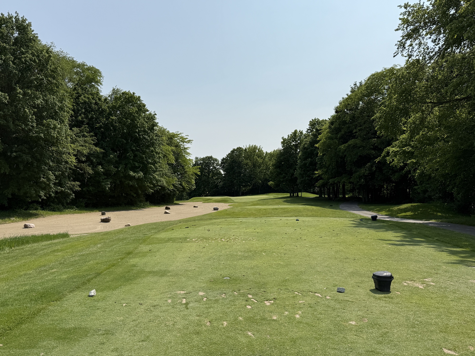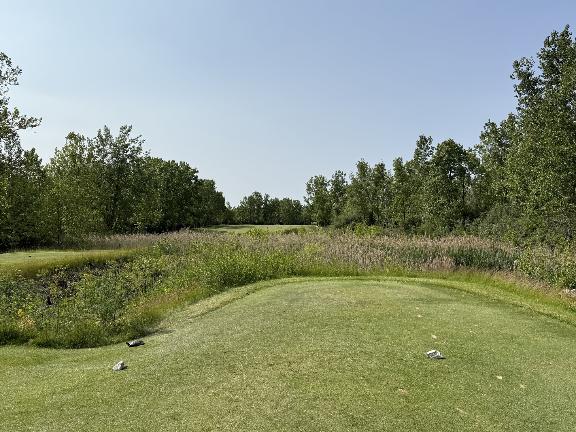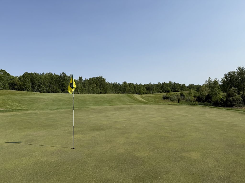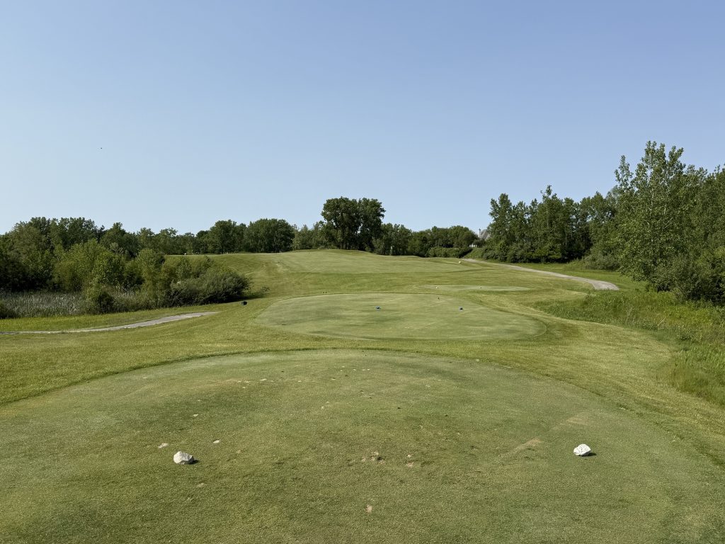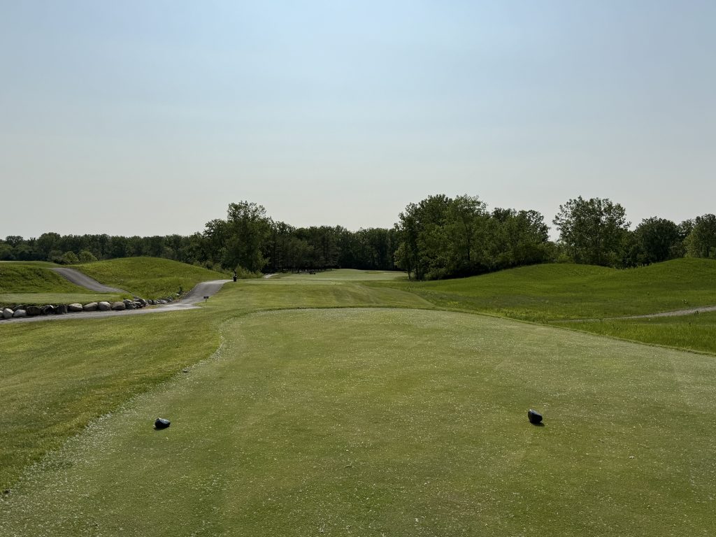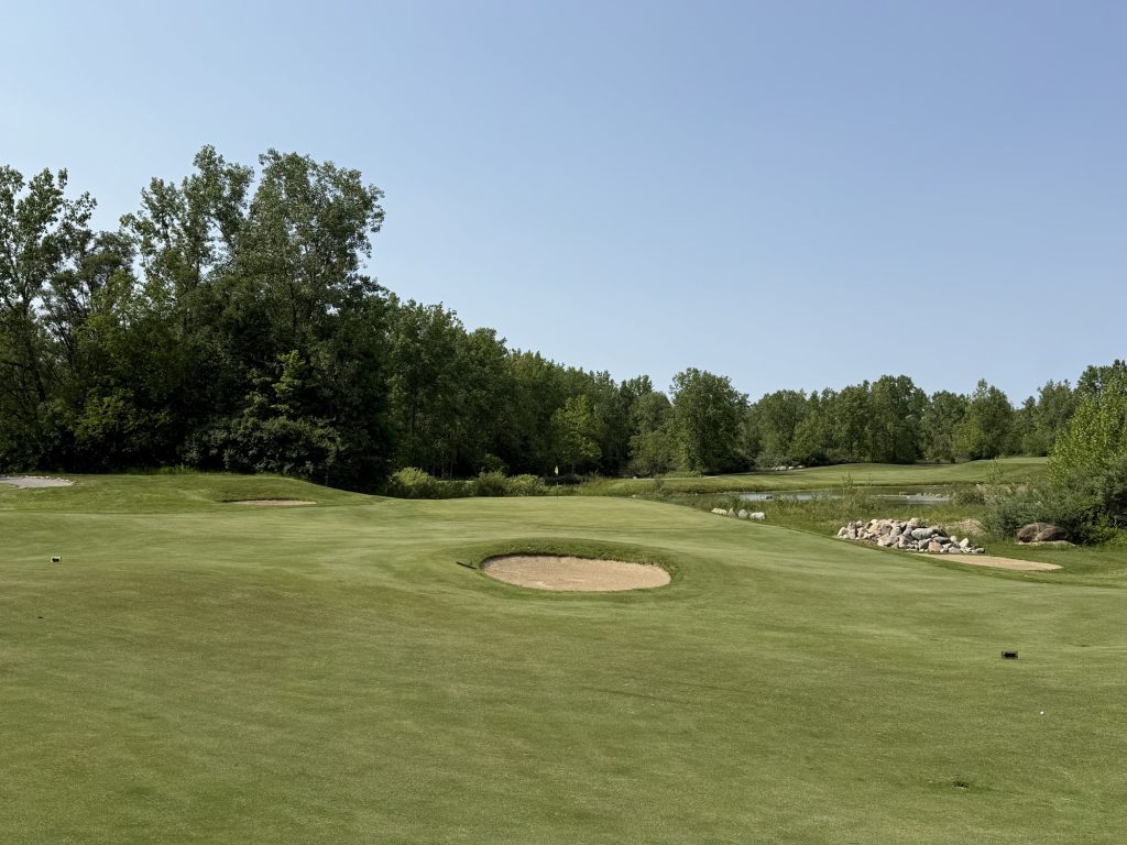 I played the Rock tees which are 71.2/132/6463. Not going to lie – shooting your handicap here is going to be a tall order. While there are challenging design elements – think elevated greens that have false edges and fairways that drop off steeply into grass depressions – there is also a lot of target golf. My advice is to hit whatever club you can to keep the ball in play. There are many narrow corridors (e.g., the 6th) to play through and many areas to lose balls.